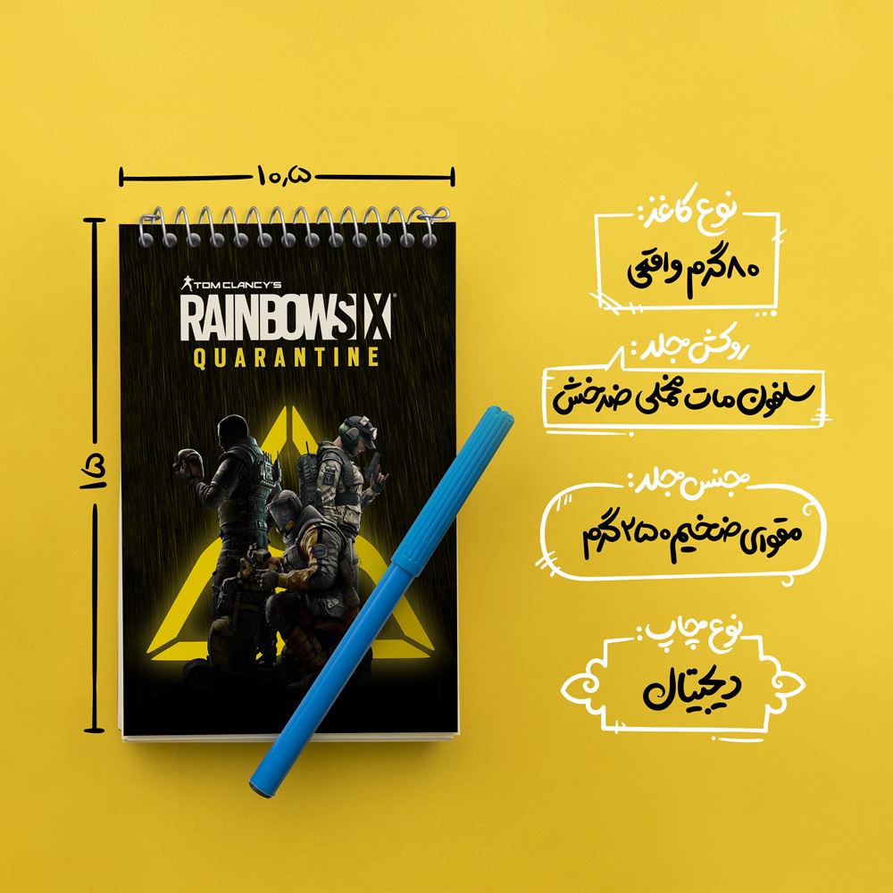 برند خندالو در زمینه تولید انواع دفاتر فانتزی و تحصیلی فعالیت میکند که به دلیل جذابیت ظاهری و طرح های متنوع طرفداران زیادی دارد. دفتر یادداشت خندالو طرح رینبو سیکس Rainbow Six محصولی مناسب برای همه عاشقان لوازم التحریر است و همچنین همه کسانی که بنا به موقعیت تحصیل یا شغلشان با دفتر و نوشت افزار زیاد سر و کار دارند. در تولید دفتر یادداشت خندالو طرح رینبو سیکس Rainbow Six از نوع صحافی فنر مارپیچ استفاده شده که در این نوع صحافی برگهها به راحتی چرخیده و یا بیرون آورده می شوند. دفتر های خندالو دارای جلد انعطاف پذیر از جنس مقوای گلاسه 250 گرم با روکش سلفون مات مخملی است که به شما امکان میدهد از دفتر خود بدون اینکه نگرانی از شکستن یا خراب شدن جلد را داشته باشید استفاده کنید و همچنین در این دفاتر از کاغذ 80 گرم با کیفیت استفاده شده که باعث میشود هنگام نوشتن به خوبی جوهر قلم بر روی صفحه نشسته و از خط خوردگیها جلوگیری کند. دفتر یادداشت خندالو با جنس و دوام مناسب، برگه های کاملاً سفید و خطوط طوسی دقیق را داراست که انسان را به نوشتن منظم و زیبا ترغیب میکند. طراحی کاملاً مناسب این دفاتر، به همراه کیفیت بالا، از آن یک محصول مورد علاقه و قابل اعتماد برای همه مقاطع تحصیلی میسازد. دفتر یادداشت خندالو طرح رینبو سیکس Rainbow Six انتخابی هوشمندانه و مناسب برای افرادی است که به دنبال دفتری با کیفیت و کاربرد عالی هستند. این دفتر، همراه خوبی برای شما در تمام مراحل تحصیل و کار خواهد بود و تجربهای لذتبخش از نوشتن و آموختن را به شما هدیه میدهد.