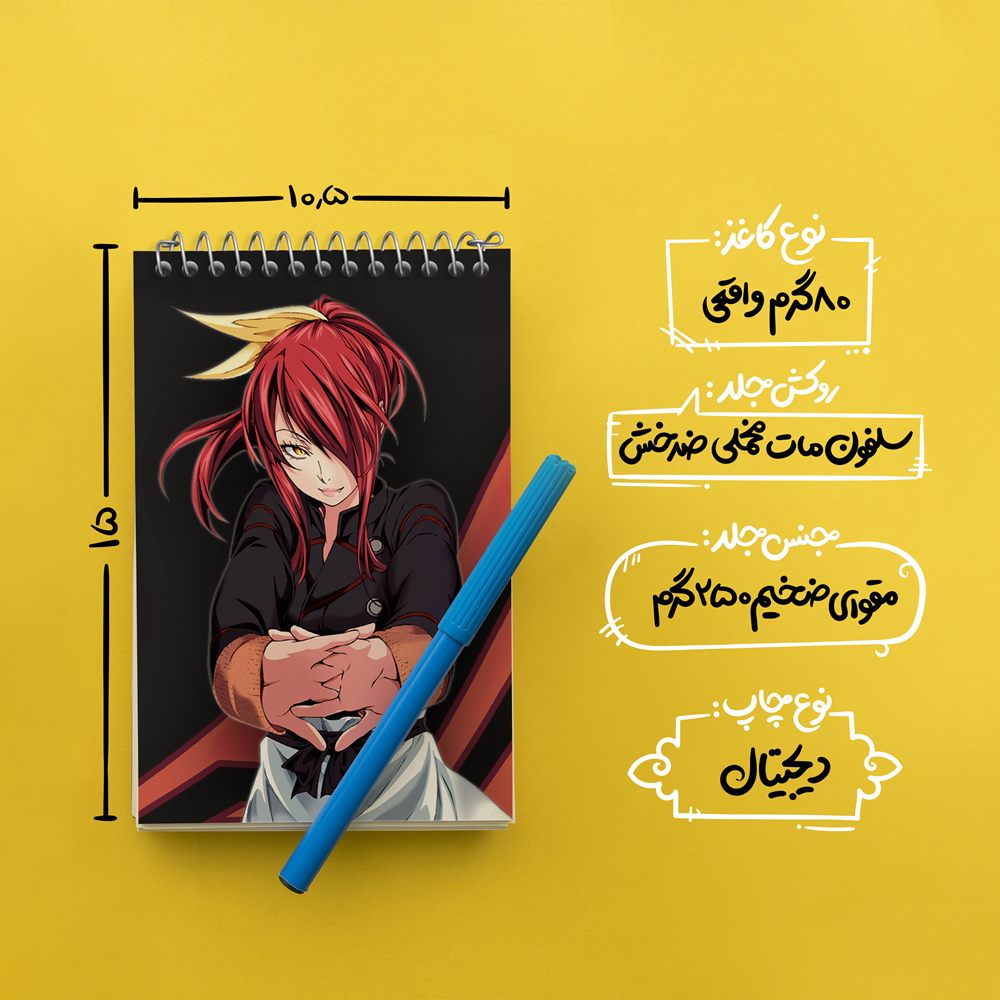برند خندالو در زمینه تولید انواع دفاتر فانتزی و تحصیلی فعالیت میکند که به دلیل جذابیت ظاهری و طرح های متنوع طرفداران زیادی دارد. دفتر یادداشت خندالو طرح ریندو انیمه جنگ غذاها Food Wars محصولی مناسب برای همه عاشقان لوازم التحریر است و همچنین همه کسانی که بنا به موقعیت تحصیل یا شغلشان با دفتر و نوشت افزار زیاد سر و کار دارند. در تولید دفتر یادداشت خندالو طرح ریندو انیمه جنگ غذاها Food Wars از نوع صحافی فنر مارپیچ استفاده شده که در این نوع صحافی برگهها به راحتی چرخیده و یا بیرون آورده می شوند. دفتر های خندالو دارای جلد انعطاف پذیر از جنس مقوای گلاسه 250 گرم با روکش سلفون مات مخملی است که به شما امکان میدهد از دفتر خود بدون اینکه نگرانی از شکستن یا خراب شدن جلد را داشته باشید استفاده کنید و همچنین در این دفاتر از کاغذ 80 گرم با کیفیت استفاده شده که باعث میشود هنگام نوشتن به خوبی جوهر قلم بر روی صفحه نشسته و از خط خوردگیها جلوگیری کند. دفتر یادداشت خندالو با جنس و دوام مناسب، برگه های کاملاً سفید و خطوط طوسی دقیق را داراست که انسان را به نوشتن منظم و زیبا ترغیب میکند. طراحی کاملاً مناسب این دفاتر، به همراه کیفیت بالا، از آن یک محصول مورد علاقه و قابل اعتماد برای همه مقاطع تحصیلی میسازد. دفتر یادداشت خندالو طرح ریندو انیمه جنگ غذاها Food Wars انتخابی هوشمندانه و مناسب برای افرادی است که به دنبال دفتری با کیفیت و کاربرد عالی هستند. این دفتر، همراه خوبی برای شما در تمام مراحل تحصیل و کار خواهد بود و تجربهای لذتبخش از نوشتن و آموختن را به شما هدیه میدهد.