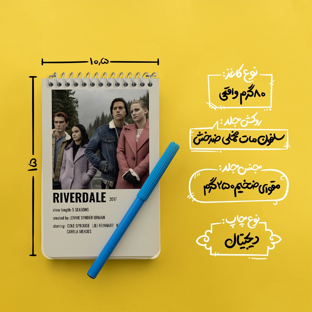برند خندالو در زمینه تولید انواع دفاتر فانتزی و تحصیلی فعالیت میکند که به دلیل جذابیت ظاهری و طرح های متنوع طرفداران زیادی دارد. دفتر یادداشت خندالو طرح ریوردیل (Riverdale) محصولی مناسب برای همه عاشقان لوازم التحریر است و همچنین همه کسانی که بنا به موقعیت تحصیل یا شغلشان با دفتر و نوشت افزار زیاد سر و کار دارند. در تولید دفتر یادداشت خندالو طرح ریوردیل (Riverdale) از نوع صحافی فنر مارپیچ استفاده شده که در این نوع صحافی برگهها به راحتی چرخیده و یا بیرون آورده می شوند. دفتر های خندالو دارای جلد انعطاف پذیر از جنس مقوای گلاسه 250 گرم با روکش سلفون مات مخملی است که به شما امکان میدهد از دفتر خود بدون اینکه نگرانی از شکستن یا خراب شدن جلد را داشته باشید استفاده کنید و همچنین در این دفاتر از کاغذ 80 گرم با کیفیت استفاده شده که باعث میشود هنگام نوشتن به خوبی جوهر قلم بر روی صفحه نشسته و از خط خوردگیها جلوگیری کند. دفتر یادداشت خندالو با جنس و دوام مناسب، برگه های کاملاً سفید و خطوط طوسی دقیق را داراست که انسان را به نوشتن منظم و زیبا ترغیب میکند. طراحی کاملاً مناسب این دفاتر، به همراه کیفیت بالا، از آن یک محصول مورد علاقه و قابل اعتماد برای همه مقاطع تحصیلی میسازد. دفتر یادداشت خندالو طرح ریوردیل (Riverdale) انتخابی هوشمندانه و مناسب برای افرادی است که به دنبال دفتری با کیفیت و کاربرد عالی هستند. این دفتر، همراه خوبی برای شما در تمام مراحل تحصیل و کار خواهد بود و تجربهای لذتبخش از نوشتن و آموختن را به شما هدیه میدهد.