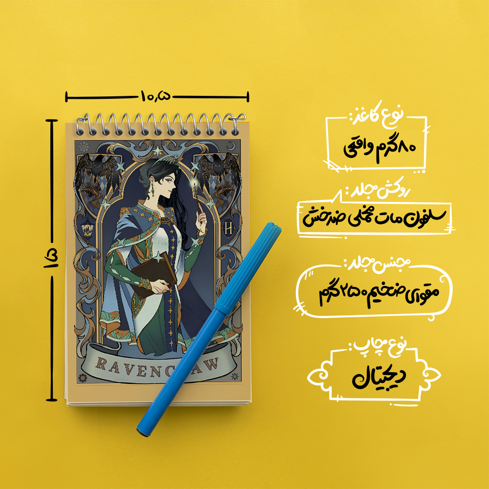 برند خندالو در زمینه تولید انواع دفاتر فانتزی و تحصیلی فعالیت میکند که به دلیل جذابیت ظاهری و طرح های متنوع طرفداران زیادی دارد. دفتر یادداشت خندالو طرح ریونکلاو هری پاتر (Harry Potter) محصولی مناسب برای همه عاشقان لوازم التحریر است و همچنین همه کسانی که بنا به موقعیت تحصیل یا شغلشان با دفتر و نوشت افزار زیاد سر و کار دارند. در تولید دفتر یادداشت خندالو طرح ریونکلاو هری پاتر (Harry Potter) از نوع صحافی فنر مارپیچ استفاده شده که در این نوع صحافی برگهها به راحتی چرخیده و یا بیرون آورده می شوند. دفتر های خندالو دارای جلد انعطاف پذیر از جنس مقوای گلاسه 250 گرم با روکش سلفون مات مخملی است که به شما امکان میدهد از دفتر خود بدون اینکه نگرانی از شکستن یا خراب شدن جلد را داشته باشید استفاده کنید و همچنین در این دفاتر از کاغذ 80 گرم با کیفیت استفاده شده که باعث میشود هنگام نوشتن به خوبی جوهر قلم بر روی صفحه نشسته و از خط خوردگیها جلوگیری کند. دفتر یادداشت خندالو با جنس و دوام مناسب، برگه های کاملاً سفید و خطوط طوسی دقیق را داراست که انسان را به نوشتن منظم و زیبا ترغیب میکند. طراحی کاملاً مناسب این دفاتر، به همراه کیفیت بالا، از آن یک محصول مورد علاقه و قابل اعتماد برای همه مقاطع تحصیلی میسازد. دفتر یادداشت خندالو طرح ریونکلاو هری پاتر (Harry Potter) انتخابی هوشمندانه و مناسب برای افرادی است که به دنبال دفتری با کیفیت و کاربرد عالی هستند. این دفتر، همراه خوبی برای شما در تمام مراحل تحصیل و کار خواهد بود و تجربهای لذتبخش از نوشتن و آموختن را به شما هدیه میدهد.