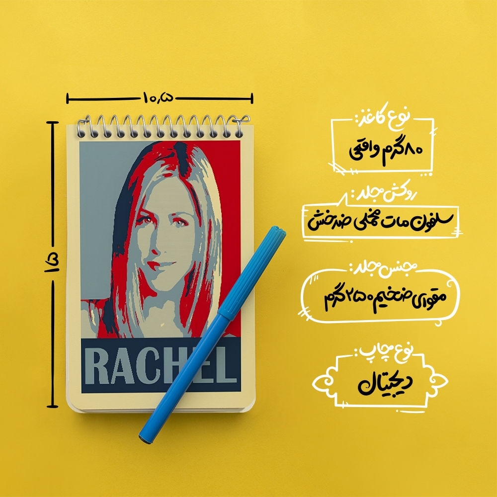 برند خندالو در زمینه تولید انواع دفاتر فانتزی و تحصیلی فعالیت میکند که به دلیل جذابیت ظاهری و طرح های متنوع طرفداران زیادی دارد. دفتر یادداشت خندالو طرح ریچل فرندز (Friends) محصولی مناسب برای همه عاشقان لوازم التحریر است و همچنین همه کسانی که بنا به موقعیت تحصیل یا شغلشان با دفتر و نوشت افزار زیاد سر و کار دارند. در تولید دفتر یادداشت خندالو طرح ریچل فرندز (Friends) از نوع صحافی فنر مارپیچ استفاده شده که در این نوع صحافی برگهها به راحتی چرخیده و یا بیرون آورده می شوند. دفتر های خندالو دارای جلد انعطاف پذیر از جنس مقوای گلاسه 250 گرم با روکش سلفون مات مخملی است که به شما امکان میدهد از دفتر خود بدون اینکه نگرانی از شکستن یا خراب شدن جلد را داشته باشید استفاده کنید و همچنین در این دفاتر از کاغذ 80 گرم با کیفیت استفاده شده که باعث میشود هنگام نوشتن به خوبی جوهر قلم بر روی صفحه نشسته و از خط خوردگیها جلوگیری کند. دفتر یادداشت خندالو با جنس و دوام مناسب، برگه های کاملاً سفید و خطوط طوسی دقیق را داراست که انسان را به نوشتن منظم و زیبا ترغیب میکند. طراحی کاملاً مناسب این دفاتر، به همراه کیفیت بالا، از آن یک محصول مورد علاقه و قابل اعتماد برای همه مقاطع تحصیلی میسازد. دفتر یادداشت خندالو طرح ریچل فرندز (Friends) انتخابی هوشمندانه و مناسب برای افرادی است که به دنبال دفتری با کیفیت و کاربرد عالی هستند. این دفتر، همراه خوبی برای شما در تمام مراحل تحصیل و کار خواهد بود و تجربهای لذتبخش از نوشتن و آموختن را به شما هدیه میدهد.
