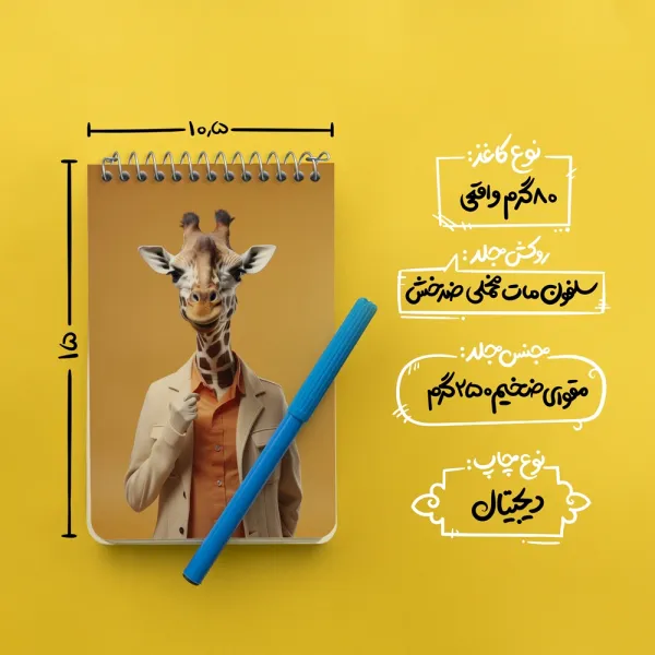 برند خندالو در زمینه تولید انواع دفاتر فانتزی و تحصیلی فعالیت میکند که به دلیل جذابیت ظاهری و طرح های متنوع طرفداران زیادی دارد. دفتر یادداشت خندالو طرح زرافه بامزه محصولی مناسب برای همه عاشقان لوازم التحریر است و همچنین همه کسانی که بنا به موقعیت تحصیل یا شغلشان با دفتر و نوشت افزار زیاد سر و کار دارند. در تولید دفتر یادداشت خندالو طرح زرافه بامزه از نوع صحافی فنر مارپیچ استفاده شده که در این نوع صحافی برگه‌ها به راحتی چرخیده و یا بیرون آورده می شوند.