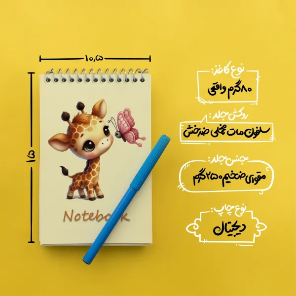 برند خندالو در زمینه تولید انواع دفاتر فانتزی و تحصیلی فعالیت میکند که به دلیل جذابیت ظاهری و طرح های متنوع طرفداران زیادی دارد. دفتر یادداشت خندالو طرح زرافه بامزه محصولی مناسب برای همه عاشقان لوازم التحریر است و همچنین همه کسانی که بنا به موقعیت تحصیل یا شغلشان با دفتر و نوشت افزار زیاد سر و کار دارند. در تولید دفتر یادداشت خندالو طرح زرافه بامزه از نوع صحافی فنر مارپیچ استفاده شده که در این نوع صحافی برگه‌ها به راحتی چرخیده و یا بیرون آورده می شوند.
