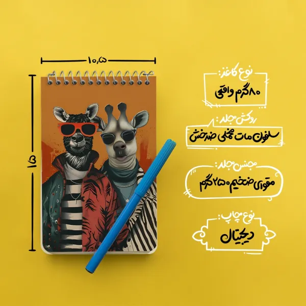 برند خندالو در زمینه تولید انواع دفاتر فانتزی و تحصیلی فعالیت میکند که به دلیل جذابیت ظاهری و طرح های متنوع طرفداران زیادی دارد. دفتر یادداشت خندالو طرح زرافه و لامای بامزه محصولی مناسب برای همه عاشقان لوازم التحریر است و همچنین همه کسانی که بنا به موقعیت تحصیل یا شغلشان با دفتر و نوشت افزار زیاد سر و کار دارند. در تولید دفتر یادداشت خندالو طرح زرافه و لامای بامزه از نوع صحافی فنر مارپیچ استفاده شده که در این نوع صحافی برگهها به راحتی چرخیده و یا بیرون آورده می شوند. دفتر های خندالو دارای جلد انعطاف پذیر از جنس مقوای گلاسه 250 گرم با روکش سلفون مات مخملی است که به شما امکان میدهد از دفتر خود بدون اینکه نگرانی از شکستن یا خراب شدن جلد را داشته باشید استفاده کنید و همچنین در این دفاتر از کاغذ 80 گرم با کیفیت استفاده شده که باعث میشود هنگام نوشتن به خوبی جوهر قلم بر روی صفحه نشسته و از خط خوردگیها جلوگیری کند. دفتر یادداشت خندالو با جنس و دوام مناسب، برگه های کاملاً سفید و خطوط طوسی دقیق را داراست که انسان را به نوشتن منظم و زیبا ترغیب میکند. طراحی کاملاً مناسب این دفاتر، به همراه کیفیت بالا، از آن یک محصول مورد علاقه و قابل اعتماد برای همه مقاطع تحصیلی میسازد. دفتر یادداشت خندالو طرح زرافه و لامای بامزه انتخابی هوشمندانه و مناسب برای افرادی است که به دنبال دفتری با کیفیت و کاربرد عالی هستند. این دفتر، همراه خوبی برای شما در تمام مراحل تحصیل و کار خواهد بود و تجربهای لذتبخش از نوشتن و آموختن را به شما هدیه میدهد.