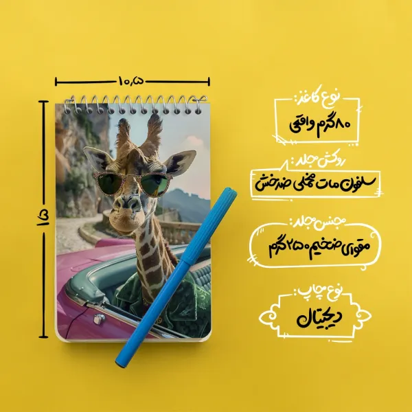 برند خندالو در زمینه تولید انواع دفاتر فانتزی و تحصیلی فعالیت میکند که به دلیل جذابیت ظاهری و طرح های متنوع طرفداران زیادی دارد. دفتر یادداشت خندالو طرح زرافه محصولی مناسب برای همه عاشقان لوازم التحریر است و همچنین همه کسانی که بنا به موقعیت تحصیل یا شغلشان با دفتر و نوشت افزار زیاد سر و کار دارند. در تولید دفتر یادداشت خندالو طرح زرافه از نوع صحافی فنر مارپیچ استفاده شده که در این نوع صحافی برگهها به راحتی چرخیده و یا بیرون آورده می شوند. دفتر های خندالو دارای جلد انعطاف پذیر از جنس مقوای گلاسه 250 گرم با روکش سلفون مات مخملی است که به شما امکان میدهد از دفتر خود بدون اینکه نگرانی از شکستن یا خراب شدن جلد را داشته باشید استفاده کنید و همچنین در این دفاتر از کاغذ 80 گرم با کیفیت استفاده شده که باعث میشود هنگام نوشتن به خوبی جوهر قلم بر روی صفحه نشسته و از خط خوردگیها جلوگیری کند. دفتر یادداشت خندالو با جنس و دوام مناسب، برگه های کاملاً سفید و خطوط طوسی دقیق را داراست که انسان را به نوشتن منظم و زیبا ترغیب میکند. طراحی کاملاً مناسب این دفاتر، به همراه کیفیت بالا، از آن یک محصول مورد علاقه و قابل اعتماد برای همه مقاطع تحصیلی میسازد. دفتر یادداشت خندالو طرح زرافه انتخابی هوشمندانه و مناسب برای افرادی است که به دنبال دفتری با کیفیت و کاربرد عالی هستند. این دفتر، همراه خوبی برای شما در تمام مراحل تحصیل و کار خواهد بود و تجربهای لذتبخش از نوشتن و آموختن را به شما هدیه میدهد.