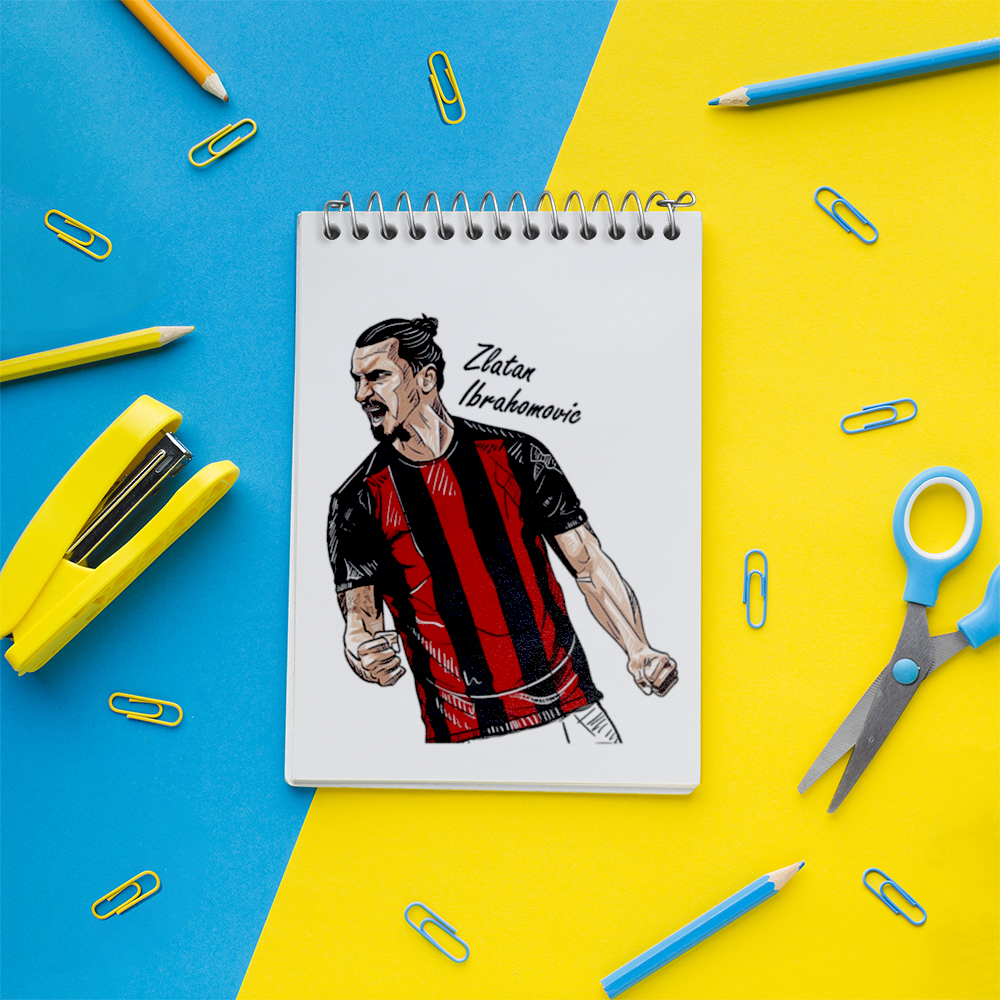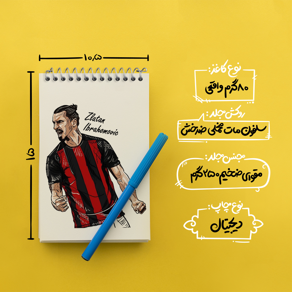 برند خندالو در زمینه تولید انواع دفاتر فانتزی و تحصیلی فعالیت میکند که به دلیل جذابیت ظاهری و طرح های متنوع طرفداران زیادی دارد. دفتر یادداشت خندالو طرح زلاتان ابراهیموویچ محصولی مناسب برای همه عاشقان لوازم التحریر است و همچنین همه کسانی که بنا به موقعیت تحصیل یا شغلشان با دفتر و نوشت افزار زیاد سر و کار دارند. در تولید دفتر یادداشت خندالو طرح زلاتان ابراهیموویچ از نوع صحافی فنر مارپیچ استفاده شده که در این نوع صحافی برگه‌ها به راحتی چرخیده و یا بیرون آورده می شوند.