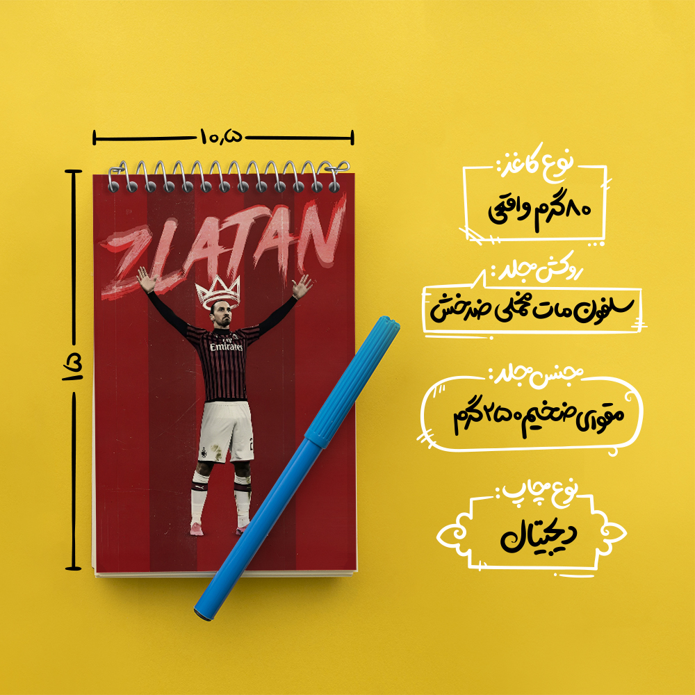 برند خندالو در زمینه تولید انواع دفاتر فانتزی و تحصیلی فعالیت میکند که به دلیل جذابیت ظاهری و طرح های متنوع طرفداران زیادی دارد. دفتر یادداشت خندالو طرح زلاتان ابراهیموویچ محصولی مناسب برای همه عاشقان لوازم التحریر است و همچنین همه کسانی که بنا به موقعیت تحصیل یا شغلشان با دفتر و نوشت افزار زیاد سر و کار دارند. در تولید دفتر یادداشت خندالو طرح زلاتان ابراهیموویچ از نوع صحافی فنر مارپیچ استفاده شده که در این نوع صحافی برگه‌ها به راحتی چرخیده و یا بیرون آورده می شوند.