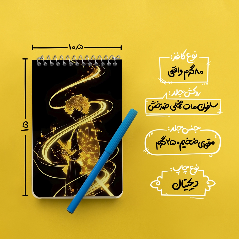 برند خندالو در زمینه تولید انواع دفاتر فانتزی و تحصیلی فعالیت میکند که به دلیل جذابیت ظاهری و طرح های متنوع طرفداران زیادی دارد. دفتر یادداشت خندالو طرح زنیتسو انیمه شیطان کش محصولی مناسب برای همه عاشقان لوازم التحریر است و همچنین همه کسانی که بنا به موقعیت تحصیل یا شغلشان با دفتر و نوشت افزار زیاد سر و کار دارند. در تولید دفتر یادداشت خندالو طرح زنیتسو انیمه شیطان کش از نوع صحافی فنر مارپیچ استفاده شده که در این نوع صحافی برگه‌ها به راحتی چرخیده و یا بیرون آورده می شوند.