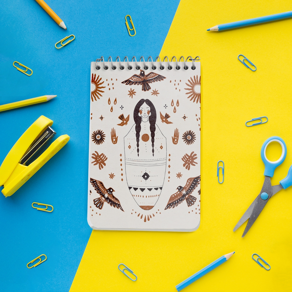 برند خندالو در زمینه تولید انواع دفاتر فانتزی و تحصیلی فعالیت میکند که به دلیل جذابیت ظاهری و طرح های متنوع طرفداران زیادی دارد. دفتر یادداشت خندالو طرح زن سرخپوست محصولی مناسب برای همه عاشقان لوازم التحریر است و همچنین همه کسانی که بنا به موقعیت تحصیل یا شغلشان با دفتر و نوشت افزار زیاد سر و کار دارند. در تولید دفتر یادداشت خندالو طرح زن سرخپوست از نوع صحافی فنر مارپیچ استفاده شده که در این نوع صحافی برگه‌ها به راحتی چرخیده و یا بیرون آورده می شوند.