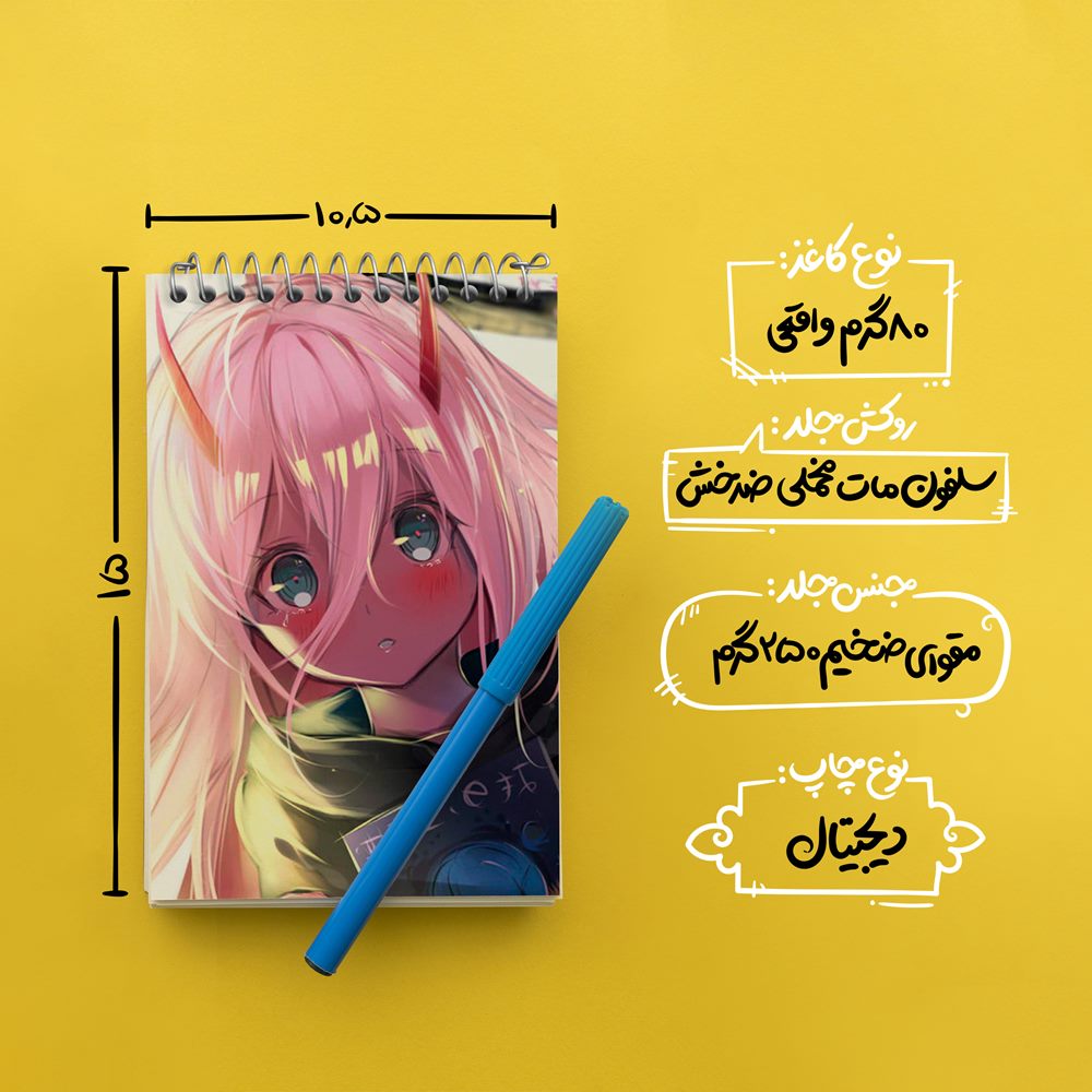 برند خندالو در زمینه تولید انواع دفاتر فانتزی و تحصیلی فعالیت میکند که به دلیل جذابیت ظاهری و طرح های متنوع طرفداران زیادی دارد. دفتر یادداشت خندالو طرح زیروتو انیمه دارلینگ در فرنکس محصولی مناسب برای همه عاشقان لوازم التحریر است و همچنین همه کسانی که بنا به موقعیت تحصیل یا شغلشان با دفتر و نوشت افزار زیاد سر و کار دارند. در تولید دفتر یادداشت خندالو طرح زیروتو انیمه دارلینگ در فرنکس از نوع صحافی فنر مارپیچ استفاده شده که در این نوع صحافی برگهها به راحتی چرخیده و یا بیرون آورده می شوند. دفتر های خندالو دارای جلد انعطاف پذیر از جنس مقوای گلاسه 250 گرم با روکش سلفون مات مخملی است که به شما امکان میدهد از دفتر خود بدون اینکه نگرانی از شکستن یا خراب شدن جلد را داشته باشید استفاده کنید و همچنین در این دفاتر از کاغذ 80 گرم با کیفیت استفاده شده که باعث میشود هنگام نوشتن به خوبی جوهر قلم بر روی صفحه نشسته و از خط خوردگیها جلوگیری کند. دفتر یادداشت خندالو با جنس و دوام مناسب، برگه های کاملاً سفید و خطوط طوسی دقیق را داراست که انسان را به نوشتن منظم و زیبا ترغیب میکند. طراحی کاملاً مناسب این دفاتر، به همراه کیفیت بالا، از آن یک محصول مورد علاقه و قابل اعتماد برای همه مقاطع تحصیلی میسازد. دفتر یادداشت خندالو طرح زیروتو انیمه دارلینگ در فرنکس انتخابی هوشمندانه و مناسب برای افرادی است که به دنبال دفتری با کیفیت و کاربرد عالی هستند. این دفتر، همراه خوبی برای شما در تمام مراحل تحصیل و کار خواهد بود و تجربهای لذتبخش از نوشتن و آموختن را به شما هدیه میدهد.
