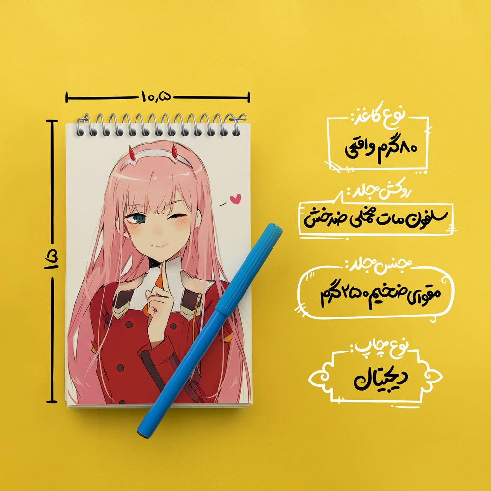 برند خندالو در زمینه تولید انواع دفاتر فانتزی و تحصیلی فعالیت میکند که به دلیل جذابیت ظاهری و طرح های متنوع طرفداران زیادی دارد. دفتر یادداشت خندالو طرح زیروتو انیمه دارلینگ Darling محصولی مناسب برای همه عاشقان لوازم التحریر است و همچنین همه کسانی که بنا به موقعیت تحصیل یا شغلشان با دفتر و نوشت افزار زیاد سر و کار دارند. در تولید دفتر یادداشت خندالو طرح زیروتو انیمه دارلینگ Darling از نوع صحافی فنر مارپیچ استفاده شده که در این نوع صحافی برگهها به راحتی چرخیده و یا بیرون آورده می شوند. دفتر های خندالو دارای جلد انعطاف پذیر از جنس مقوای گلاسه 250 گرم با روکش سلفون مات مخملی است که به شما امکان میدهد از دفتر خود بدون اینکه نگرانی از شکستن یا خراب شدن جلد را داشته باشید استفاده کنید و همچنین در این دفاتر از کاغذ 80 گرم با کیفیت استفاده شده که باعث میشود هنگام نوشتن به خوبی جوهر قلم بر روی صفحه نشسته و از خط خوردگیها جلوگیری کند. دفتر یادداشت خندالو با جنس و دوام مناسب، برگه های کاملاً سفید و خطوط طوسی دقیق را داراست که انسان را به نوشتن منظم و زیبا ترغیب میکند. طراحی کاملاً مناسب این دفاتر، به همراه کیفیت بالا، از آن یک محصول مورد علاقه و قابل اعتماد برای همه مقاطع تحصیلی میسازد. دفتر یادداشت خندالو طرح زیروتو انیمه دارلینگ Darling انتخابی هوشمندانه و مناسب برای افرادی است که به دنبال دفتری با کیفیت و کاربرد عالی هستند. این دفتر، همراه خوبی برای شما در تمام مراحل تحصیل و کار خواهد بود و تجربهای لذتبخش از نوشتن و آموختن را به شما هدیه میدهد.