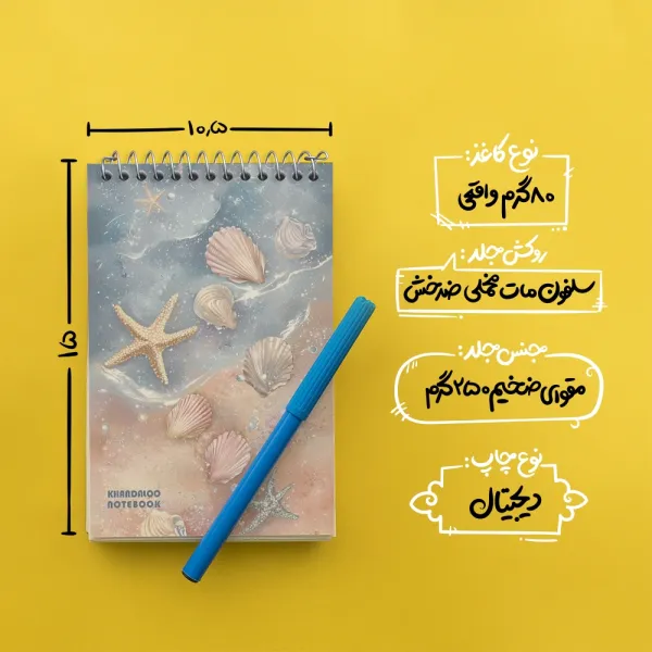 برند خندالو در زمینه تولید انواع دفاتر فانتزی و تحصیلی فعالیت میکند که به دلیل جذابیت ظاهری و طرح های متنوع طرفداران زیادی دارد. دفتر یادداشت خندالو طرح ساحل و دریا محصولی مناسب برای همه عاشقان لوازم التحریر است و همچنین همه کسانی که بنا به موقعیت تحصیل یا شغلشان با دفتر و نوشت افزار زیاد سر و کار دارند. در تولید دفتر یادداشت خندالو طرح ساحل و دریا از نوع صحافی فنر مارپیچ استفاده شده که در این نوع صحافی برگهها به راحتی چرخیده و یا بیرون آورده می شوند. دفتر های خندالو دارای جلد انعطاف پذیر از جنس مقوای گلاسه 250 گرم با روکش سلفون مات مخملی است که به شما امکان میدهد از دفتر خود بدون اینکه نگرانی از شکستن یا خراب شدن جلد را داشته باشید استفاده کنید و همچنین در این دفاتر از کاغذ 80 گرم با کیفیت استفاده شده که باعث میشود هنگام نوشتن به خوبی جوهر قلم بر روی صفحه نشسته و از خط خوردگیها جلوگیری کند. دفتر یادداشت خندالو با جنس و دوام مناسب، برگه های کاملاً سفید و خطوط طوسی دقیق را داراست که انسان را به نوشتن منظم و زیبا ترغیب میکند. طراحی کاملاً مناسب این دفاتر، به همراه کیفیت بالا، از آن یک محصول مورد علاقه و قابل اعتماد برای همه مقاطع تحصیلی میسازد. دفتر یادداشت خندالو طرح ساحل و دریا انتخابی هوشمندانه و مناسب برای افرادی است که به دنبال دفتری با کیفیت و کاربرد عالی هستند. این دفتر، همراه خوبی برای شما در تمام مراحل تحصیل و کار خواهد بود و تجربهای لذتبخش از نوشتن و آموختن را به شما هدیه میدهد.