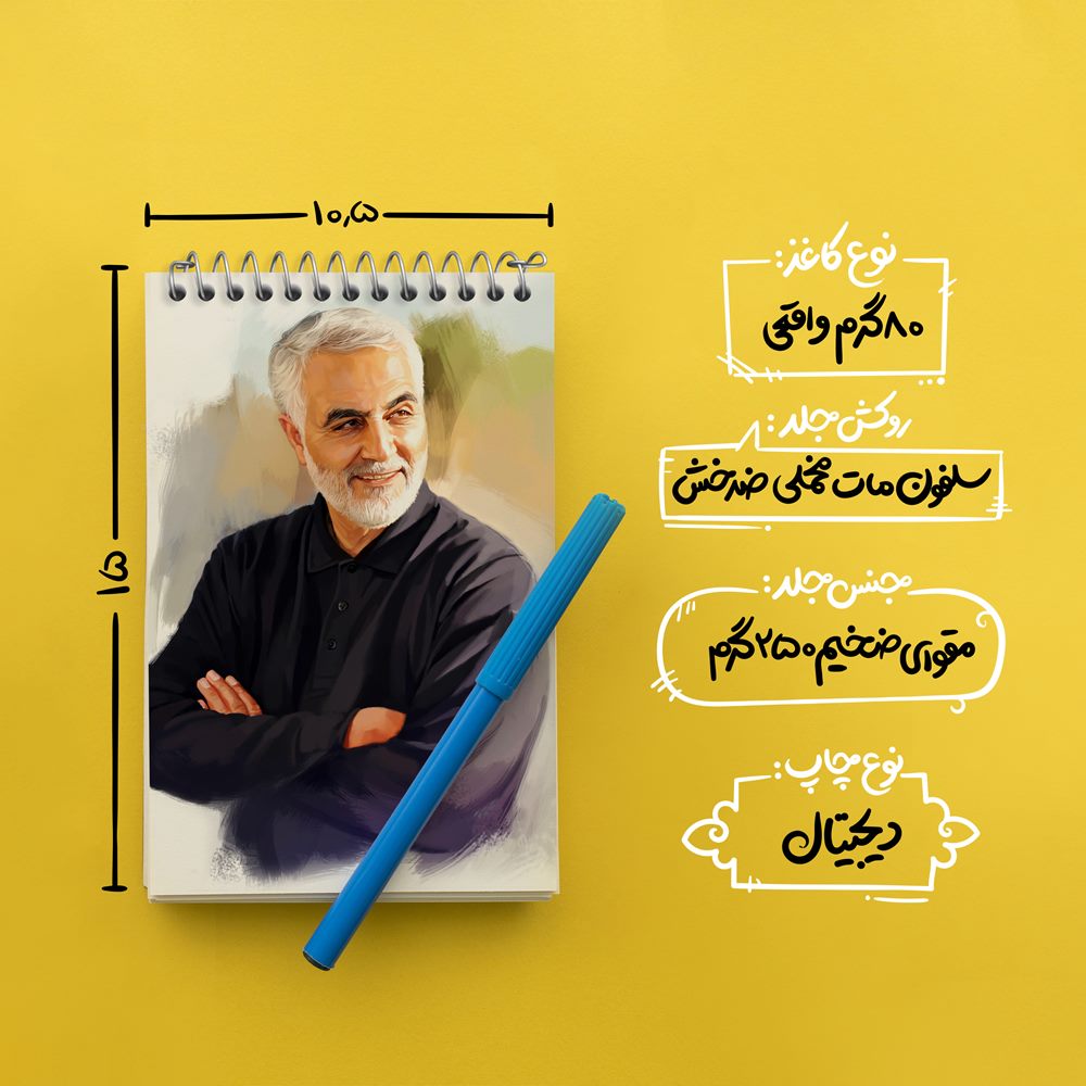 برند خندالو در زمینه تولید انواع دفاتر فانتزی و تحصیلی فعالیت میکند که به دلیل جذابیت ظاهری و طرح های متنوع طرفداران زیادی دارد. دفتر یادداشت خندالو طرح سردار قاسم سلیمانی محصولی مناسب برای همه عاشقان لوازم التحریر است و همچنین همه کسانی که بنا به موقعیت تحصیل یا شغلشان با دفتر و نوشت افزار زیاد سر و کار دارند. در تولید دفتر یادداشت خندالو طرح سردار قاسم سلیمانی از نوع صحافی فنر مارپیچ استفاده شده که در این نوع صحافی برگه‌ها به راحتی چرخیده و یا بیرون آورده می شوند.