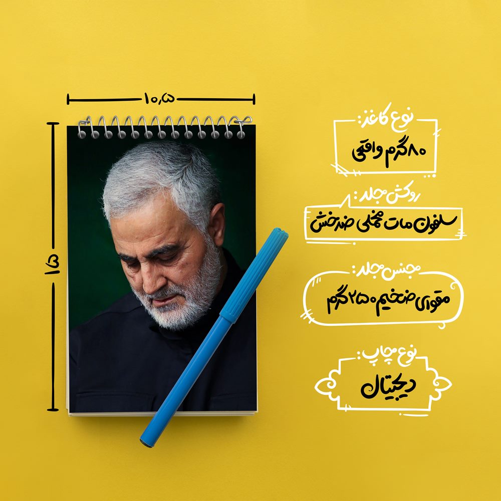 برند خندالو در زمینه تولید انواع دفاتر فانتزی و تحصیلی فعالیت میکند که به دلیل جذابیت ظاهری و طرح های متنوع طرفداران زیادی دارد. دفتر یادداشت خندالو طرح سردار قاسم سلیمانی محصولی مناسب برای همه عاشقان لوازم التحریر است و همچنین همه کسانی که بنا به موقعیت تحصیل یا شغلشان با دفتر و نوشت افزار زیاد سر و کار دارند. در تولید دفتر یادداشت خندالو طرح سردار قاسم سلیمانی از نوع صحافی فنر مارپیچ استفاده شده که در این نوع صحافی برگه‌ها به راحتی چرخیده و یا بیرون آورده می شوند.
