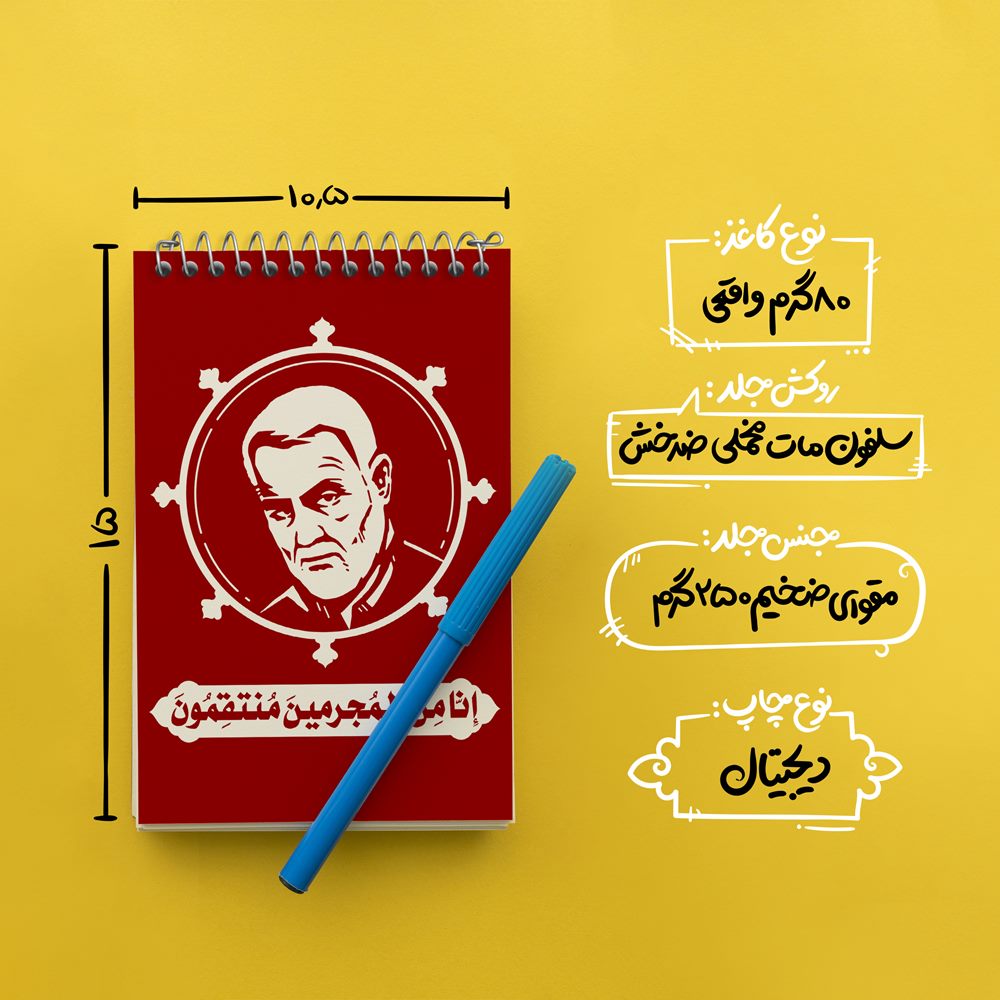 برند خندالو در زمینه تولید انواع دفاتر فانتزی و تحصیلی فعالیت میکند که به دلیل جذابیت ظاهری و طرح های متنوع طرفداران زیادی دارد. دفتر یادداشت خندالو طرح سردار قاسم سلیمانی محصولی مناسب برای همه عاشقان لوازم التحریر است و همچنین همه کسانی که بنا به موقعیت تحصیل یا شغلشان با دفتر و نوشت افزار زیاد سر و کار دارند. در تولید دفتر یادداشت خندالو طرح سردار قاسم سلیمانی از نوع صحافی فنر مارپیچ استفاده شده که در این نوع صحافی برگه‌ها به راحتی چرخیده و یا بیرون آورده می شوند.