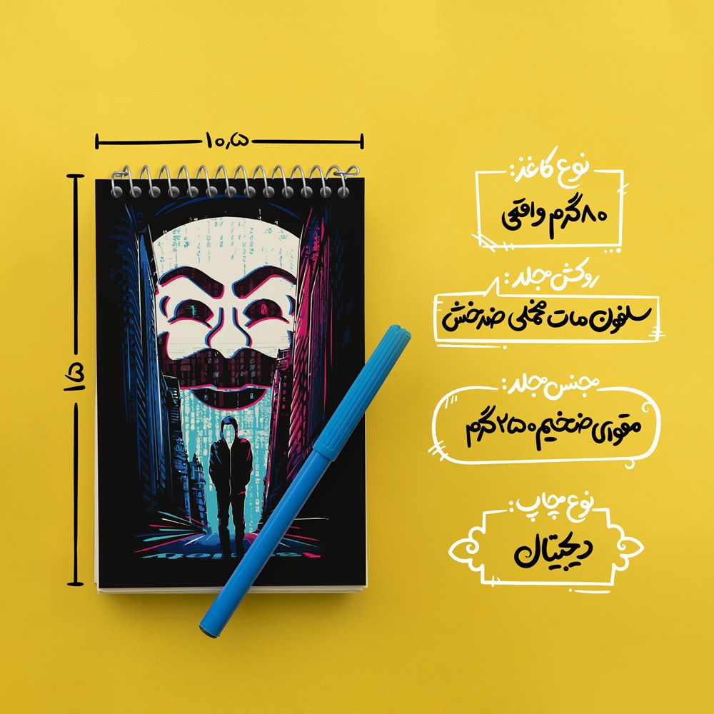 برند خندالو در زمینه تولید انواع دفاتر فانتزی و تحصیلی فعالیت میکند که به دلیل جذابیت ظاهری و طرح های متنوع طرفداران زیادی دارد. دفتر یادداشت خندالو طرح سریال آقای ربات Mr.Robot محصولی مناسب برای همه عاشقان لوازم التحریر است و همچنین همه کسانی که بنا به موقعیت تحصیل یا شغلشان با دفتر و نوشت افزار زیاد سر و کار دارند. در تولید دفتر یادداشت خندالو طرح سریال آقای ربات Mr.Robot از نوع صحافی فنر مارپیچ استفاده شده که در این نوع صحافی برگهها به راحتی چرخیده و یا بیرون آورده می شوند. دفتر های خندالو دارای جلد انعطاف پذیر از جنس مقوای گلاسه 250 گرم با روکش سلفون مات مخملی است که به شما امکان میدهد از دفتر خود بدون اینکه نگرانی از شکستن یا خراب شدن جلد را داشته باشید استفاده کنید و همچنین در این دفاتر از کاغذ 80 گرم با کیفیت استفاده شده که باعث میشود هنگام نوشتن به خوبی جوهر قلم بر روی صفحه نشسته و از خط خوردگیها جلوگیری کند. دفتر یادداشت خندالو با جنس و دوام مناسب، برگه های کاملاً سفید و خطوط طوسی دقیق را داراست که انسان را به نوشتن منظم و زیبا ترغیب میکند. طراحی کاملاً مناسب این دفاتر، به همراه کیفیت بالا، از آن یک محصول مورد علاقه و قابل اعتماد برای همه مقاطع تحصیلی میسازد. دفتر یادداشت خندالو طرح سریال آقای ربات Mr.Robot انتخابی هوشمندانه و مناسب برای افرادی است که به دنبال دفتری با کیفیت و کاربرد عالی هستند. این دفتر، همراه خوبی برای شما در تمام مراحل تحصیل و کار خواهد بود و تجربهای لذتبخش از نوشتن و آموختن را به شما هدیه میدهد.
