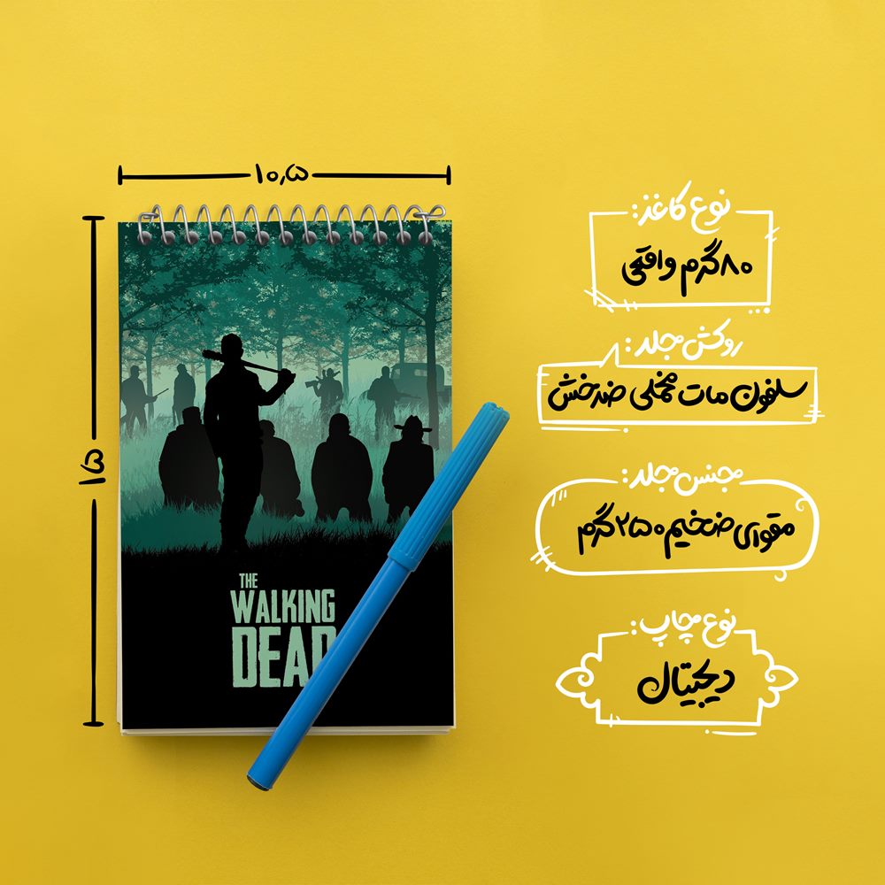 برند خندالو در زمینه تولید انواع دفاتر فانتزی و تحصیلی فعالیت میکند که به دلیل جذابیت ظاهری و طرح های متنوع طرفداران زیادی دارد. دفتر یادداشت خندالو طرح سریال مردگان متحرک The Walking Dead محصولی مناسب برای همه عاشقان لوازم التحریر است و همچنین همه کسانی که بنا به موقعیت تحصیل یا شغلشان با دفتر و نوشت افزار زیاد سر و کار دارند. در تولید دفتر یادداشت خندالو طرح سریال مردگان متحرک The Walking Dead از نوع صحافی فنر مارپیچ استفاده شده که در این نوع صحافی برگهها به راحتی چرخیده و یا بیرون آورده می شوند. دفتر های خندالو دارای جلد انعطاف پذیر از جنس مقوای گلاسه 250 گرم با روکش سلفون مات مخملی است که به شما امکان میدهد از دفتر خود بدون اینکه نگرانی از شکستن یا خراب شدن جلد را داشته باشید استفاده کنید و همچنین در این دفاتر از کاغذ 80 گرم با کیفیت استفاده شده که باعث میشود هنگام نوشتن به خوبی جوهر قلم بر روی صفحه نشسته و از خط خوردگیها جلوگیری کند. دفتر یادداشت خندالو با جنس و دوام مناسب، برگه های کاملاً سفید و خطوط طوسی دقیق را داراست که انسان را به نوشتن منظم و زیبا ترغیب میکند. طراحی کاملاً مناسب این دفاتر، به همراه کیفیت بالا، از آن یک محصول مورد علاقه و قابل اعتماد برای همه مقاطع تحصیلی میسازد. دفتر یادداشت خندالو طرح سریال مردگان متحرک The Walking Dead انتخابی هوشمندانه و مناسب برای افرادی است که به دنبال دفتری با کیفیت و کاربرد عالی هستند. این دفتر، همراه خوبی برای شما در تمام مراحل تحصیل و کار خواهد بود و تجربهای لذتبخش از نوشتن و آموختن را به شما هدیه میدهد.
