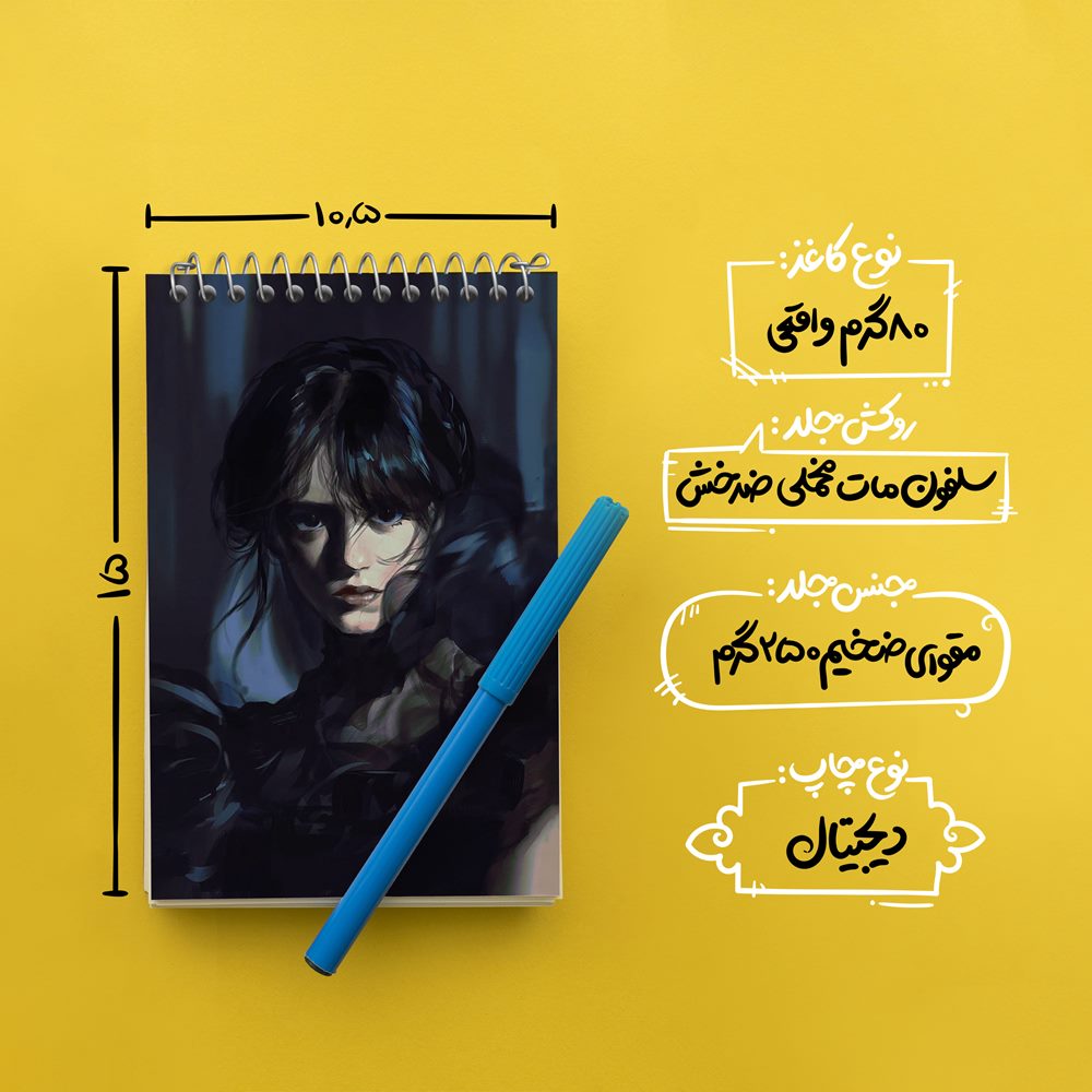 برند خندالو در زمینه تولید انواع دفاتر فانتزی و تحصیلی فعالیت میکند که به دلیل جذابیت ظاهری و طرح های متنوع طرفداران زیادی دارد. دفتر یادداشت خندالو طرح سریال ونزدی Wednesday محصولی مناسب برای همه عاشقان لوازم التحریر است و همچنین همه کسانی که بنا به موقعیت تحصیل یا شغلشان با دفتر و نوشت افزار زیاد سر و کار دارند. در تولید دفتر یادداشت خندالو طرح سریال ونزدی Wednesday از نوع صحافی فنر مارپیچ استفاده شده که در این نوع صحافی برگهها به راحتی چرخیده و یا بیرون آورده می شوند. دفتر های خندالو دارای جلد انعطاف پذیر از جنس مقوای گلاسه 250 گرم با روکش سلفون مات مخملی است که به شما امکان میدهد از دفتر خود بدون اینکه نگرانی از شکستن یا خراب شدن جلد را داشته باشید استفاده کنید و همچنین در این دفاتر از کاغذ 80 گرم با کیفیت استفاده شده که باعث میشود هنگام نوشتن به خوبی جوهر قلم بر روی صفحه نشسته و از خط خوردگیها جلوگیری کند. دفتر یادداشت خندالو با جنس و دوام مناسب، برگه های کاملاً سفید و خطوط طوسی دقیق را داراست که انسان را به نوشتن منظم و زیبا ترغیب میکند. طراحی کاملاً مناسب این دفاتر، به همراه کیفیت بالا، از آن یک محصول مورد علاقه و قابل اعتماد برای همه مقاطع تحصیلی میسازد. دفتر یادداشت خندالو طرح سریال ونزدی Wednesday انتخابی هوشمندانه و مناسب برای افرادی است که به دنبال دفتری با کیفیت و کاربرد عالی هستند. این دفتر، همراه خوبی برای شما در تمام مراحل تحصیل و کار خواهد بود و تجربهای لذتبخش از نوشتن و آموختن را به شما هدیه میدهد.