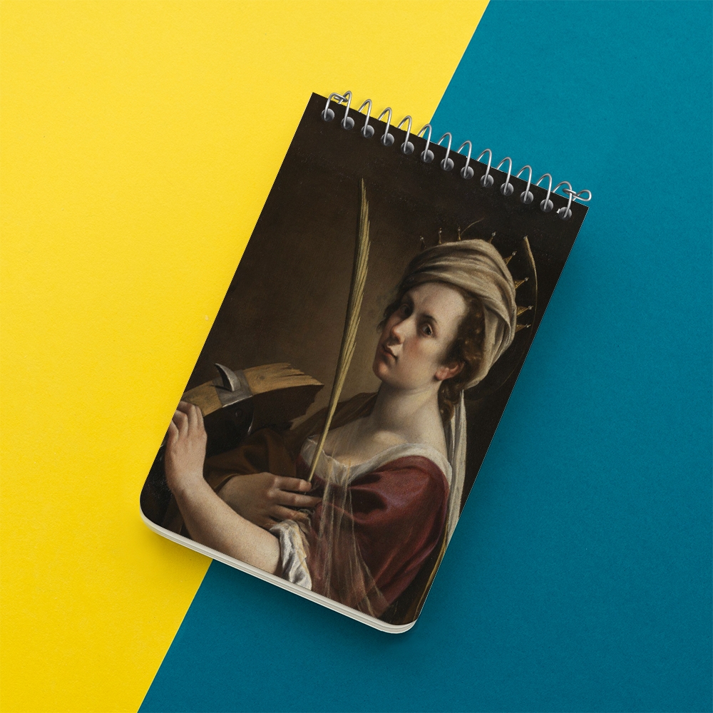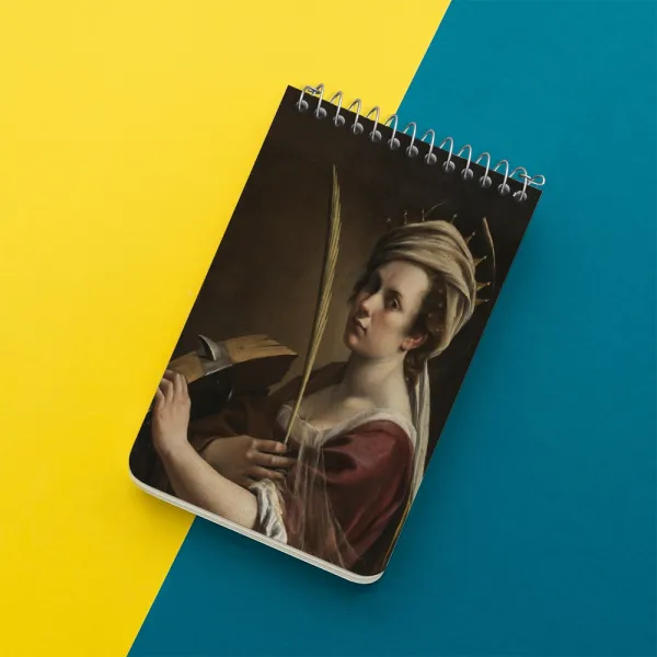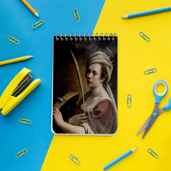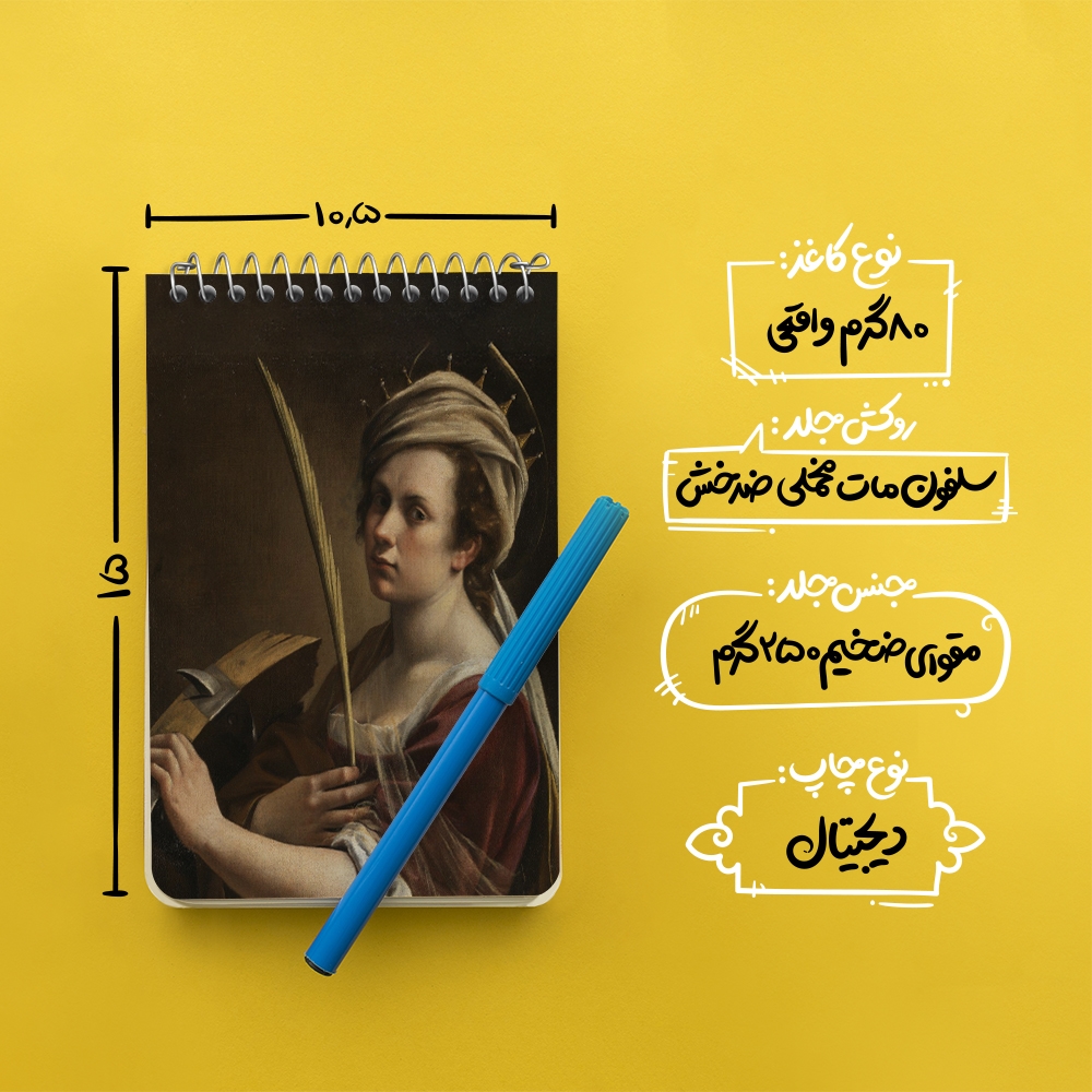 برند خندالو در زمینه تولید انواع دفاتر فانتزی و تحصیلی فعالیت میکند که به دلیل جذابیت ظاهری و طرح های متنوع طرفداران زیادی دارد. دفتر یادداشت خندالو طرح سلف پرتره در نقش سنت کاترین اثر اسکندریه درمنه جنتیلسکی محصولی مناسب برای همه عاشقان لوازم التحریر است و همچنین همه کسانی که بنا به موقعیت تحصیل یا شغلشان با دفتر و نوشت افزار زیاد سر و کار دارند. در تولید دفتر یادداشت خندالو طرح سلف پرتره در نقش سنت کاترین اثر اسکندریه درمنه جنتیلسکی از نوع صحافی فنر مارپیچ استفاده شده که در این نوع صحافی برگهها به راحتی چرخیده و یا بیرون آورده می شوند. دفتر های خندالو دارای جلد انعطاف پذیر از جنس مقوای گلاسه 250 گرم با روکش سلفون مات مخملی است که به شما امکان میدهد از دفتر خود بدون اینکه نگرانی از شکستن یا خراب شدن جلد را داشته باشید استفاده کنید و همچنین در این دفاتر از کاغذ 80 گرم با کیفیت استفاده شده که باعث میشود هنگام نوشتن به خوبی جوهر قلم بر روی صفحه نشسته و از خط خوردگیها جلوگیری کند. دفتر یادداشت خندالو با جنس و دوام مناسب، برگه های کاملاً سفید و خطوط طوسی دقیق را داراست که انسان را به نوشتن منظم و زیبا ترغیب میکند. طراحی کاملاً مناسب این دفاتر، به همراه کیفیت بالا، از آن یک محصول مورد علاقه و قابل اعتماد برای همه مقاطع تحصیلی میسازد. دفتر یادداشت خندالو طرح سلف پرتره در نقش سنت کاترین اثر اسکندریه درمنه جنتیلسکی انتخابی هوشمندانه و مناسب برای افرادی است که به دنبال دفتری با کیفیت و کاربرد عالی هستند. این دفتر، همراه خوبی برای شما در تمام مراحل تحصیل و کار خواهد بود و تجربهای لذتبخش از نوشتن و آموختن را به شما هدیه میدهد.
