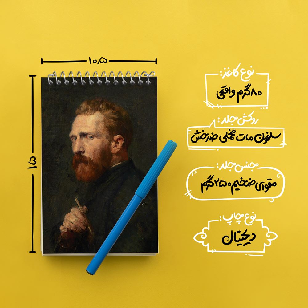 برند خندالو در زمینه تولید انواع دفاتر فانتزی و تحصیلی فعالیت میکند که به دلیل جذابیت ظاهری و طرح های متنوع طرفداران زیادی دارد. دفتر یادداشت خندالو طرح سلف پرتره ونسان ونگوگ محصولی مناسب برای همه عاشقان لوازم التحریر است و همچنین همه کسانی که بنا به موقعیت تحصیل یا شغلشان با دفتر و نوشت افزار زیاد سر و کار دارند. در تولید دفتر یادداشت خندالو طرح سلف پرتره ونسان ونگوگ از نوع صحافی فنر مارپیچ استفاده شده که در این نوع صحافی برگهها به راحتی چرخیده و یا بیرون آورده می شوند. دفتر های خندالو دارای جلد انعطاف پذیر از جنس مقوای گلاسه 250 گرم با روکش سلفون مات مخملی است که به شما امکان میدهد از دفتر خود بدون اینکه نگرانی از شکستن یا خراب شدن جلد را داشته باشید استفاده کنید و همچنین در این دفاتر از کاغذ 80 گرم با کیفیت استفاده شده که باعث میشود هنگام نوشتن به خوبی جوهر قلم بر روی صفحه نشسته و از خط خوردگیها جلوگیری کند. دفتر یادداشت خندالو با جنس و دوام مناسب، برگه های کاملاً سفید و خطوط طوسی دقیق را داراست که انسان را به نوشتن منظم و زیبا ترغیب میکند. طراحی کاملاً مناسب این دفاتر، به همراه کیفیت بالا، از آن یک محصول مورد علاقه و قابل اعتماد برای همه مقاطع تحصیلی میسازد. دفتر یادداشت خندالو طرح سلف پرتره ونسان ونگوگ انتخابی هوشمندانه و مناسب برای افرادی است که به دنبال دفتری با کیفیت و کاربرد عالی هستند. این دفتر، همراه خوبی برای شما در تمام مراحل تحصیل و کار خواهد بود و تجربهای لذتبخش از نوشتن و آموختن را به شما هدیه میدهد.
