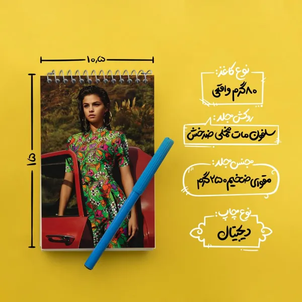 برند خندالو در زمینه تولید انواع دفاتر فانتزی و تحصیلی فعالیت میکند که به دلیل جذابیت ظاهری و طرح های متنوع طرفداران زیادی دارد. دفتر یادداشت خندالو طرح سلنا گومز Selena Gomez محصولی مناسب برای همه عاشقان لوازم التحریر است و همچنین همه کسانی که بنا به موقعیت تحصیل یا شغلشان با دفتر و نوشت افزار زیاد سر و کار دارند. در تولید دفتر یادداشت خندالو طرح سلنا گومز Selena Gomez از نوع صحافی فنر مارپیچ استفاده شده که در این نوع صحافی برگهها به راحتی چرخیده و یا بیرون آورده می شوند. دفتر های خندالو دارای جلد انعطاف پذیر از جنس مقوای گلاسه 250 گرم با روکش سلفون مات مخملی است که به شما امکان میدهد از دفتر خود بدون اینکه نگرانی از شکستن یا خراب شدن جلد را داشته باشید استفاده کنید و همچنین در این دفاتر از کاغذ 80 گرم با کیفیت استفاده شده که باعث میشود هنگام نوشتن به خوبی جوهر قلم بر روی صفحه نشسته و از خط خوردگیها جلوگیری کند. دفتر یادداشت خندالو با جنس و دوام مناسب، برگه های کاملاً سفید و خطوط طوسی دقیق را داراست که انسان را به نوشتن منظم و زیبا ترغیب میکند. طراحی کاملاً مناسب این دفاتر، به همراه کیفیت بالا، از آن یک محصول مورد علاقه و قابل اعتماد برای همه مقاطع تحصیلی میسازد. دفتر یادداشت خندالو طرح سلنا گومز Selena Gomez انتخابی هوشمندانه و مناسب برای افرادی است که به دنبال دفتری با کیفیت و کاربرد عالی هستند. این دفتر، همراه خوبی برای شما در تمام مراحل تحصیل و کار خواهد بود و تجربهای لذتبخش از نوشتن و آموختن را به شما هدیه میدهد.