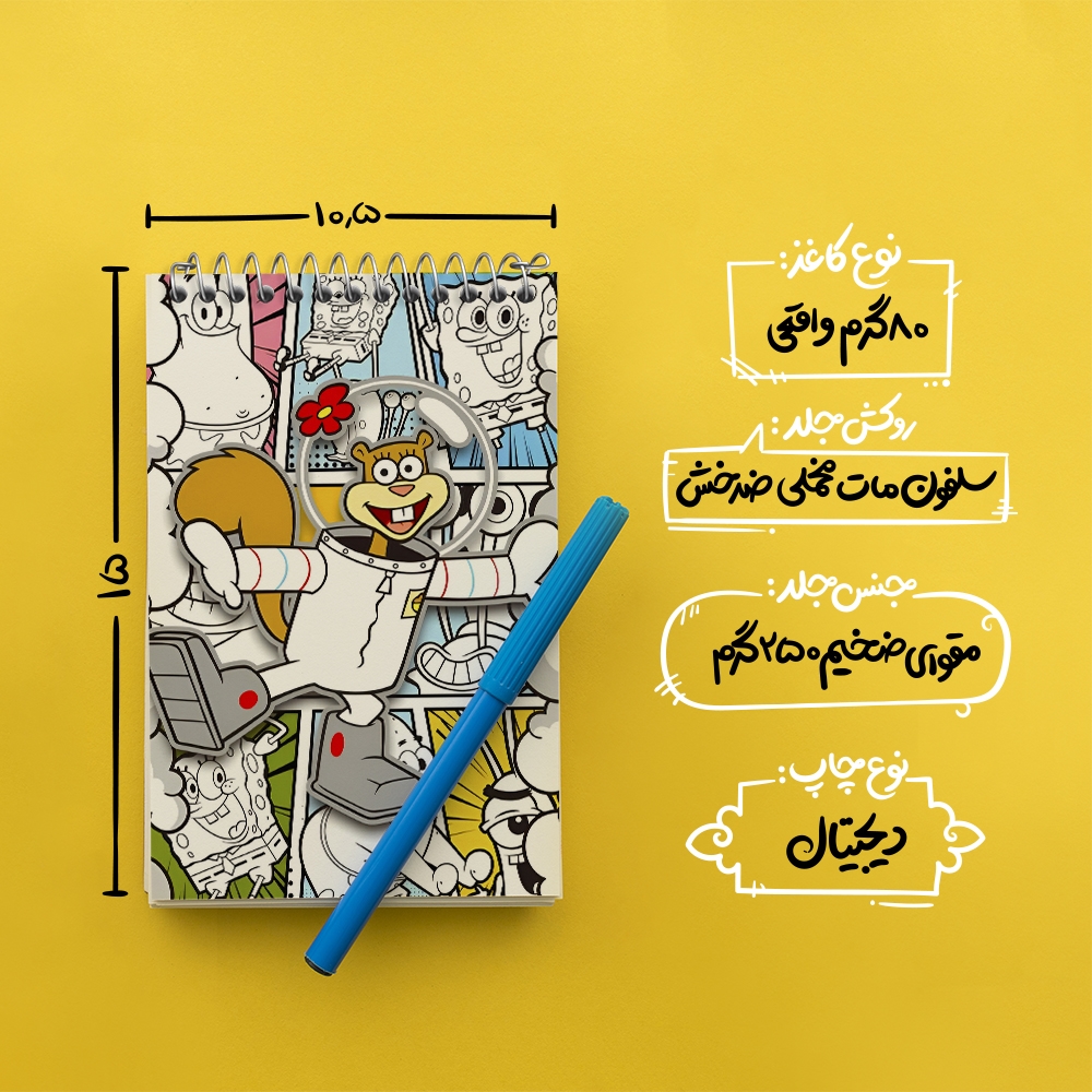 برند خندالو در زمینه تولید انواع دفاتر فانتزی و تحصیلی فعالیت میکند که به دلیل جذابیت ظاهری و طرح های متنوع طرفداران زیادی دارد. دفتر یادداشت خندالو طرح سندی چیکس (Sandy Cheeks) محصولی مناسب برای همه عاشقان لوازم التحریر است و همچنین همه کسانی که بنا به موقعیت تحصیل یا شغلشان با دفتر و نوشت افزار زیاد سر و کار دارند. در تولید دفتر یادداشت خندالو طرح سندی چیکس (Sandy Cheeks) از نوع صحافی فنر مارپیچ استفاده شده که در این نوع صحافی برگهها به راحتی چرخیده و یا بیرون آورده می شوند. دفتر های خندالو دارای جلد انعطاف پذیر از جنس مقوای گلاسه 250 گرم با روکش سلفون مات مخملی است که به شما امکان میدهد از دفتر خود بدون اینکه نگرانی از شکستن یا خراب شدن جلد را داشته باشید استفاده کنید و همچنین در این دفاتر از کاغذ 80 گرم با کیفیت استفاده شده که باعث میشود هنگام نوشتن به خوبی جوهر قلم بر روی صفحه نشسته و از خط خوردگیها جلوگیری کند. دفتر یادداشت خندالو با جنس و دوام مناسب، برگه های کاملاً سفید و خطوط طوسی دقیق را داراست که انسان را به نوشتن منظم و زیبا ترغیب میکند. طراحی کاملاً مناسب این دفاتر، به همراه کیفیت بالا، از آن یک محصول مورد علاقه و قابل اعتماد برای همه مقاطع تحصیلی میسازد. دفتر یادداشت خندالو طرح سندی چیکس (Sandy Cheeks) انتخابی هوشمندانه و مناسب برای افرادی است که به دنبال دفتری با کیفیت و کاربرد عالی هستند. این دفتر، همراه خوبی برای شما در تمام مراحل تحصیل و کار خواهد بود و تجربهای لذتبخش از نوشتن و آموختن را به شما هدیه میدهد.
