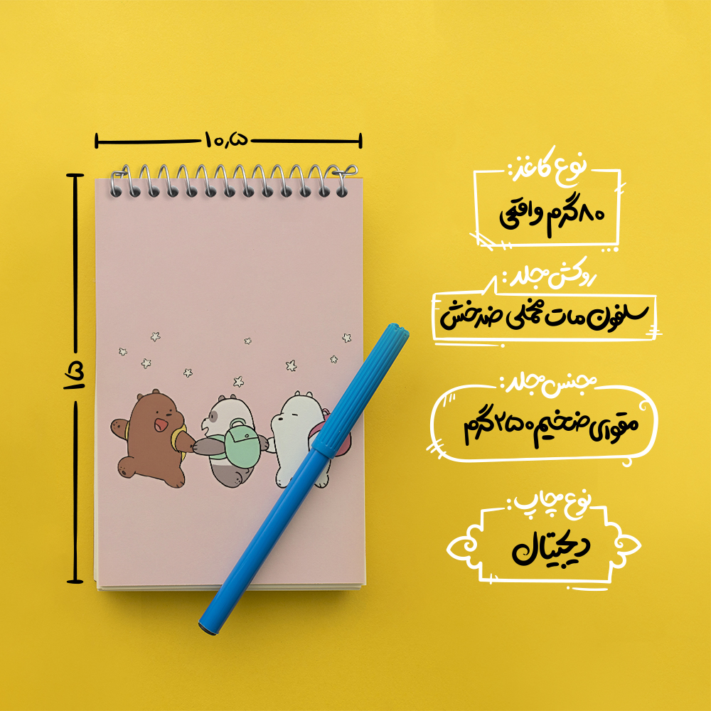 برند خندالو در زمینه تولید انواع دفاتر فانتزی و تحصیلی فعالیت میکند که به دلیل جذابیت ظاهری و طرح های متنوع طرفداران زیادی دارد. دفتر یادداشت خندالو طرح سه خرس کله پوک محصولی مناسب برای همه عاشقان لوازم التحریر است و همچنین همه کسانی که بنا به موقعیت تحصیل یا شغلشان با دفتر و نوشت افزار زیاد سر و کار دارند. در تولید دفتر یادداشت خندالو طرح سه خرس کله پوک از نوع صحافی فنر مارپیچ استفاده شده که در این نوع صحافی برگه‌ها به راحتی چرخیده و یا بیرون آورده می شوند.