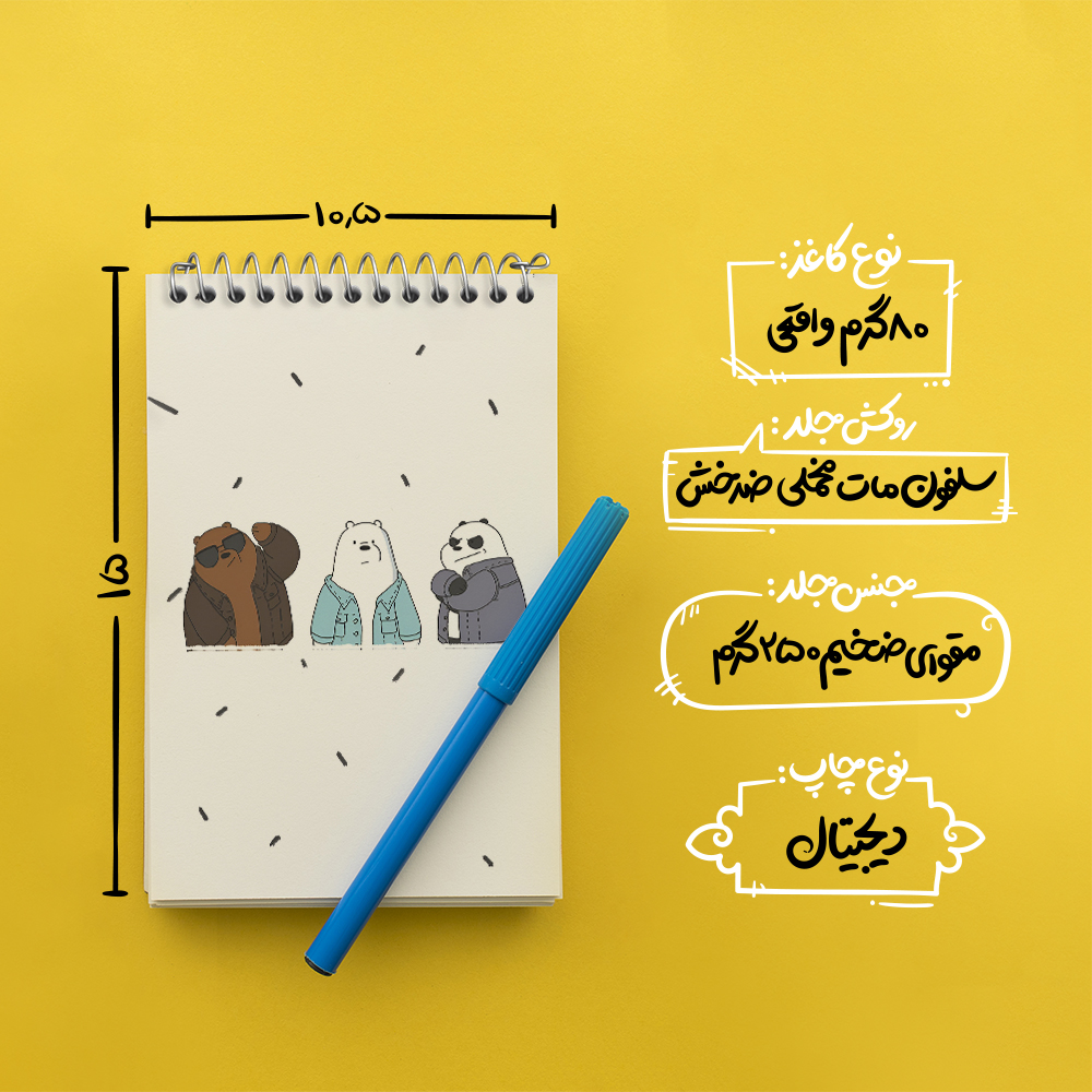 برند خندالو در زمینه تولید انواع دفاتر فانتزی و تحصیلی فعالیت میکند که به دلیل جذابیت ظاهری و طرح های متنوع طرفداران زیادی دارد. دفتر یادداشت خندالو طرح سه خرس کله پوک محصولی مناسب برای همه عاشقان لوازم التحریر است و همچنین همه کسانی که بنا به موقعیت تحصیل یا شغلشان با دفتر و نوشت افزار زیاد سر و کار دارند. در تولید دفتر یادداشت خندالو طرح سه خرس کله پوک از نوع صحافی فنر مارپیچ استفاده شده که در این نوع صحافی برگه‌ها به راحتی چرخیده و یا بیرون آورده می شوند.