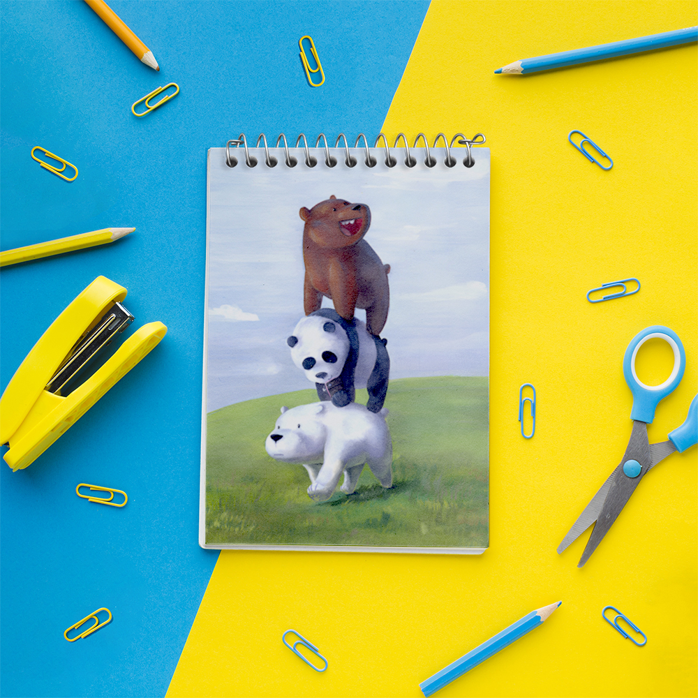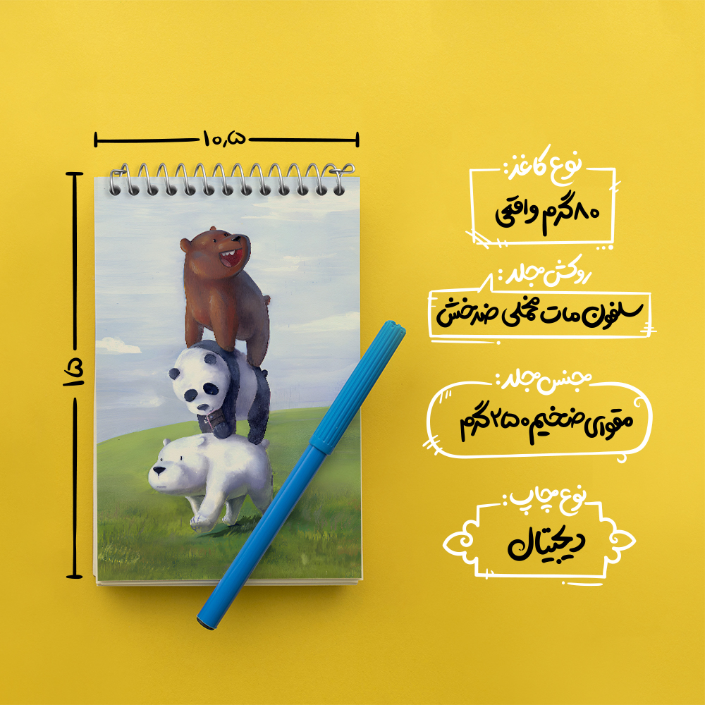 برند خندالو در زمینه تولید انواع دفاتر فانتزی و تحصیلی فعالیت میکند که به دلیل جذابیت ظاهری و طرح های متنوع طرفداران زیادی دارد. دفتر یادداشت خندالو طرح سه خرس کله پوک محصولی مناسب برای همه عاشقان لوازم التحریر است و همچنین همه کسانی که بنا به موقعیت تحصیل یا شغلشان با دفتر و نوشت افزار زیاد سر و کار دارند. در تولید دفتر یادداشت خندالو طرح سه خرس کله پوک از نوع صحافی فنر مارپیچ استفاده شده که در این نوع صحافی برگه‌ها به راحتی چرخیده و یا بیرون آورده می شوند.