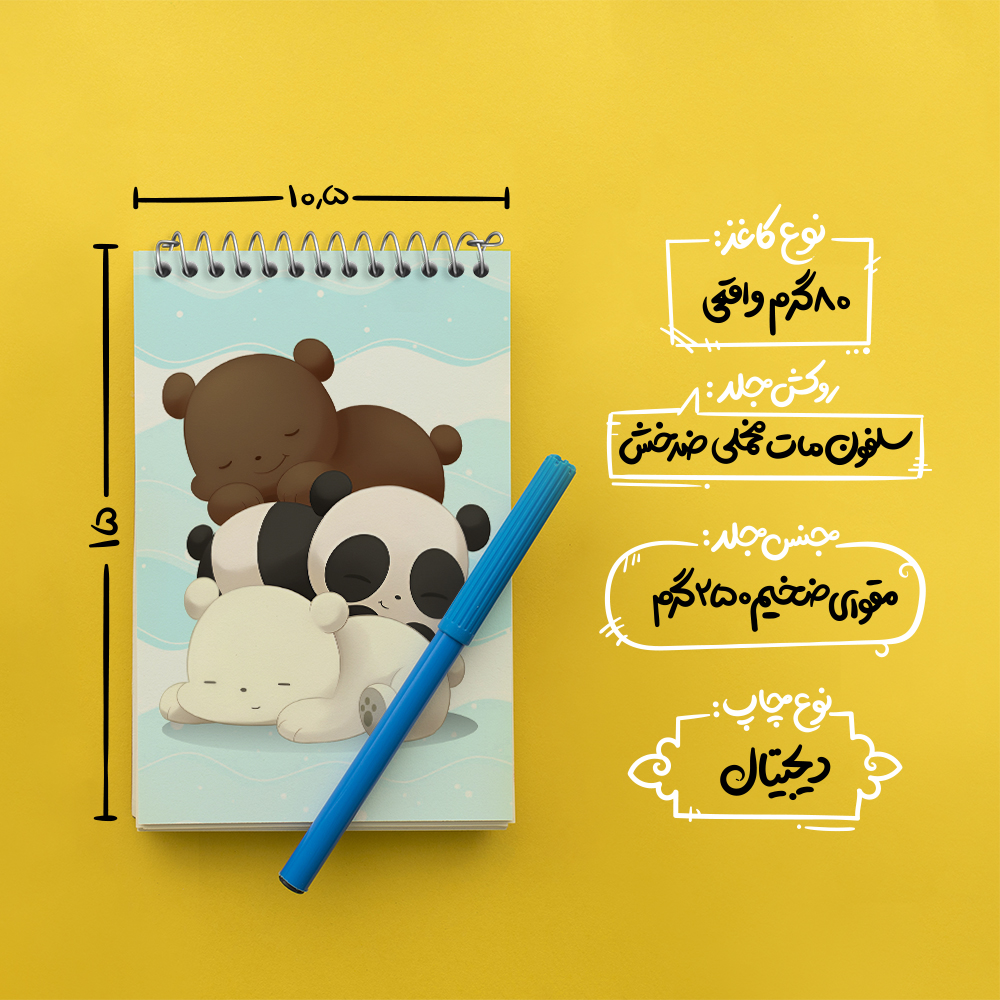 برند خندالو در زمینه تولید انواع دفاتر فانتزی و تحصیلی فعالیت میکند که به دلیل جذابیت ظاهری و طرح های متنوع طرفداران زیادی دارد. دفتر یادداشت خندالو طرح سه خرس کله پوک محصولی مناسب برای همه عاشقان لوازم التحریر است و همچنین همه کسانی که بنا به موقعیت تحصیل یا شغلشان با دفتر و نوشت افزار زیاد سر و کار دارند. در تولید دفتر یادداشت خندالو طرح سه خرس کله پوک از نوع صحافی فنر مارپیچ استفاده شده که در این نوع صحافی برگه‌ها به راحتی چرخیده و یا بیرون آورده می شوند.