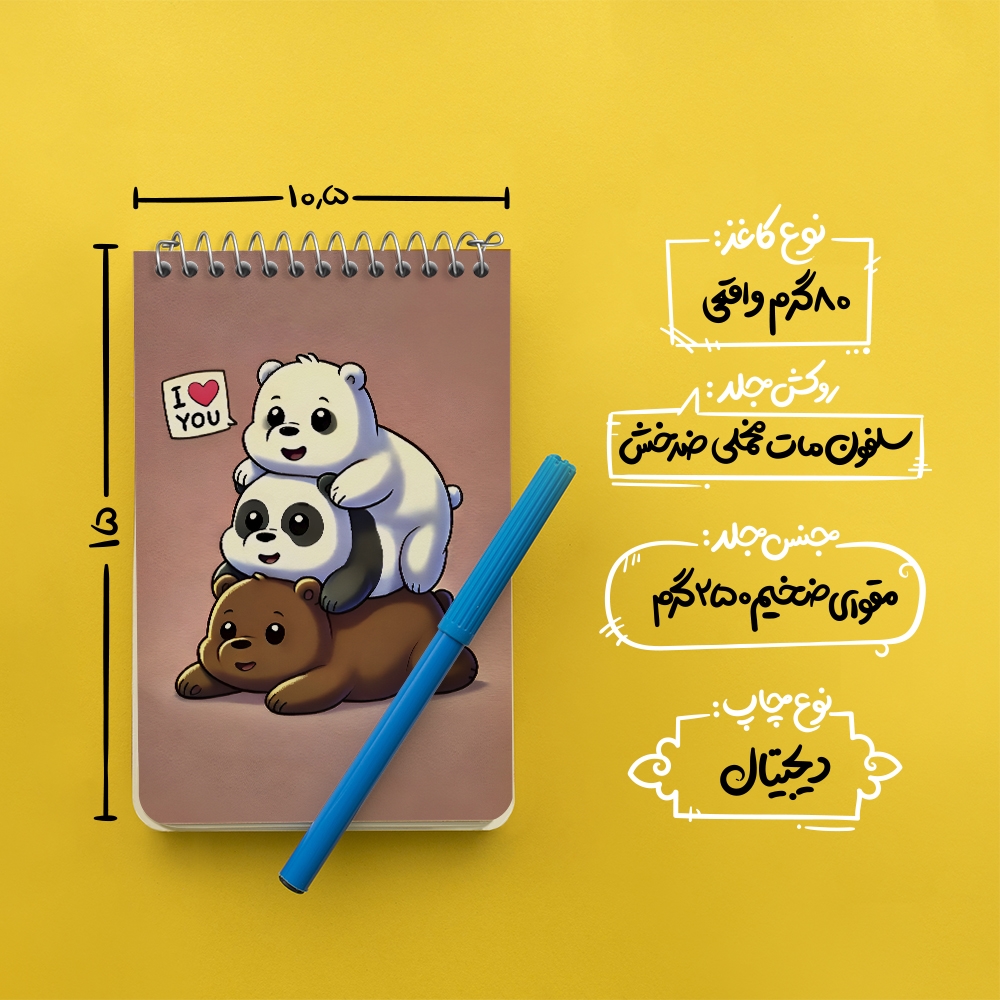 برند خندالو در زمینه تولید انواع دفاتر فانتزی و تحصیلی فعالیت میکند که به دلیل جذابیت ظاهری و طرح های متنوع طرفداران زیادی دارد. دفتر یادداشت خندالو طرح سه خرس کله پوک محصولی مناسب برای همه عاشقان لوازم التحریر است و همچنین همه کسانی که بنا به موقعیت تحصیل یا شغلشان با دفتر و نوشت افزار زیاد سر و کار دارند. در تولید دفتر یادداشت خندالو طرح سه خرس کله پوک از نوع صحافی فنر مارپیچ استفاده شده که در این نوع صحافی برگه‌ها به راحتی چرخیده و یا بیرون آورده می شوند.