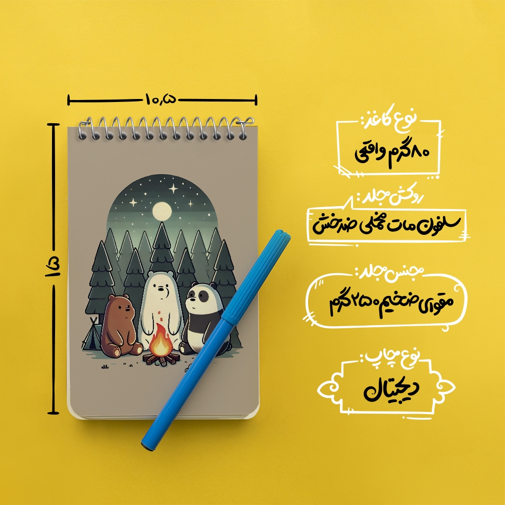 برند خندالو در زمینه تولید انواع دفاتر فانتزی و تحصیلی فعالیت میکند که به دلیل جذابیت ظاهری و طرح های متنوع طرفداران زیادی دارد. دفتر یادداشت خندالو طرح سه خرس کله پوک محصولی مناسب برای همه عاشقان لوازم التحریر است و همچنین همه کسانی که بنا به موقعیت تحصیل یا شغلشان با دفتر و نوشت افزار زیاد سر و کار دارند. در تولید دفتر یادداشت خندالو طرح سه خرس کله پوک از نوع صحافی فنر مارپیچ استفاده شده که در این نوع صحافی برگه‌ها به راحتی چرخیده و یا بیرون آورده می شوند.