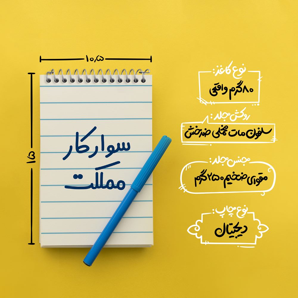 برند خندالو در زمینه تولید انواع دفاتر فانتزی و تحصیلی فعالیت میکند که به دلیل جذابیت ظاهری و طرح های متنوع طرفداران زیادی دارد. دفتر یادداشت خندالو طرح سوارکار مملکت محصولی مناسب برای همه عاشقان لوازم التحریر است و همچنین همه کسانی که بنا به موقعیت تحصیل یا شغلشان با دفتر و نوشت افزار زیاد سر و کار دارند. در تولید دفتر یادداشت خندالو طرح سوارکار مملکت از نوع صحافی فنر مارپیچ استفاده شده که در این نوع صحافی برگهها به راحتی چرخیده و یا بیرون آورده می شوند. دفتر های خندالو دارای جلد انعطاف پذیر از جنس مقوای گلاسه 250 گرم با روکش سلفون مات مخملی است که به شما امکان میدهد از دفتر خود بدون اینکه نگرانی از شکستن یا خراب شدن جلد را داشته باشید استفاده کنید و همچنین در این دفاتر از کاغذ 80 گرم با کیفیت استفاده شده که باعث میشود هنگام نوشتن به خوبی جوهر قلم بر روی صفحه نشسته و از خط خوردگیها جلوگیری کند. دفتر یادداشت خندالو با جنس و دوام مناسب، برگه های کاملاً سفید و خطوط طوسی دقیق را داراست که انسان را به نوشتن منظم و زیبا ترغیب میکند. طراحی کاملاً مناسب این دفاتر، به همراه کیفیت بالا، از آن یک محصول مورد علاقه و قابل اعتماد برای همه مقاطع تحصیلی میسازد. دفتر یادداشت خندالو طرح سوارکار مملکت انتخابی هوشمندانه و مناسب برای افرادی است که به دنبال دفتری با کیفیت و کاربرد عالی هستند. این دفتر، همراه خوبی برای شما در تمام مراحل تحصیل و کار خواهد بود و تجربهای لذتبخش از نوشتن و آموختن را به شما هدیه میدهد.