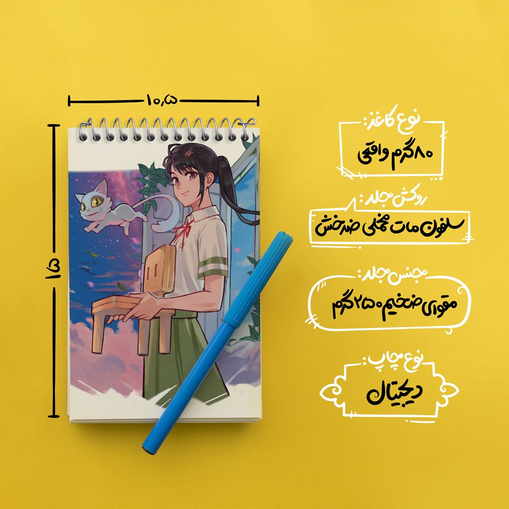 برند خندالو در زمینه تولید انواع دفاتر فانتزی و تحصیلی فعالیت میکند که به دلیل جذابیت ظاهری و طرح های متنوع طرفداران زیادی دارد. دفتر یادداشت خندالو طرح سوزومه و سوتا و دایجین محصولی مناسب برای همه عاشقان لوازم التحریر است و همچنین همه کسانی که بنا به موقعیت تحصیل یا شغلشان با دفتر و نوشت افزار زیاد سر و کار دارند. در تولید دفتر یادداشت خندالو طرح سوزومه و سوتا و دایجین از نوع صحافی فنر مارپیچ استفاده شده که در این نوع صحافی برگه‌ها به راحتی چرخیده و یا بیرون آورده می شوند.