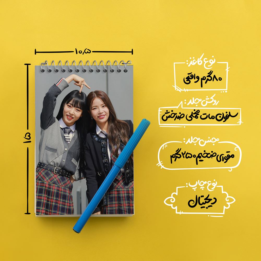 برند خندالو در زمینه تولید انواع دفاتر فانتزی و تحصیلی فعالیت میکند که به دلیل جذابیت ظاهری و طرح های متنوع طرفداران زیادی دارد. دفتر یادداشت خندالو طرح سولار و مونبیول گروه مامامو Mamamoo محصولی مناسب برای همه عاشقان لوازم التحریر است و همچنین همه کسانی که بنا به موقعیت تحصیل یا شغلشان با دفتر و نوشت افزار زیاد سر و کار دارند. در تولید دفتر یادداشت خندالو طرح سولار و مونبیول گروه مامامو Mamamoo از نوع صحافی فنر مارپیچ استفاده شده که در این نوع صحافی برگهها به راحتی چرخیده و یا بیرون آورده می شوند. دفتر های خندالو دارای جلد انعطاف پذیر از جنس مقوای گلاسه 250 گرم با روکش سلفون مات مخملی است که به شما امکان میدهد از دفتر خود بدون اینکه نگرانی از شکستن یا خراب شدن جلد را داشته باشید استفاده کنید و همچنین در این دفاتر از کاغذ 80 گرم با کیفیت استفاده شده که باعث میشود هنگام نوشتن به خوبی جوهر قلم بر روی صفحه نشسته و از خط خوردگیها جلوگیری کند. دفتر یادداشت خندالو با جنس و دوام مناسب، برگه های کاملاً سفید و خطوط طوسی دقیق را داراست که انسان را به نوشتن منظم و زیبا ترغیب میکند. طراحی کاملاً مناسب این دفاتر، به همراه کیفیت بالا، از آن یک محصول مورد علاقه و قابل اعتماد برای همه مقاطع تحصیلی میسازد. دفتر یادداشت خندالو طرح سولار و مونبیول گروه مامامو Mamamoo انتخابی هوشمندانه و مناسب برای افرادی است که به دنبال دفتری با کیفیت و کاربرد عالی هستند. این دفتر، همراه خوبی برای شما در تمام مراحل تحصیل و کار خواهد بود و تجربهای لذتبخش از نوشتن و آموختن را به شما هدیه میدهد.