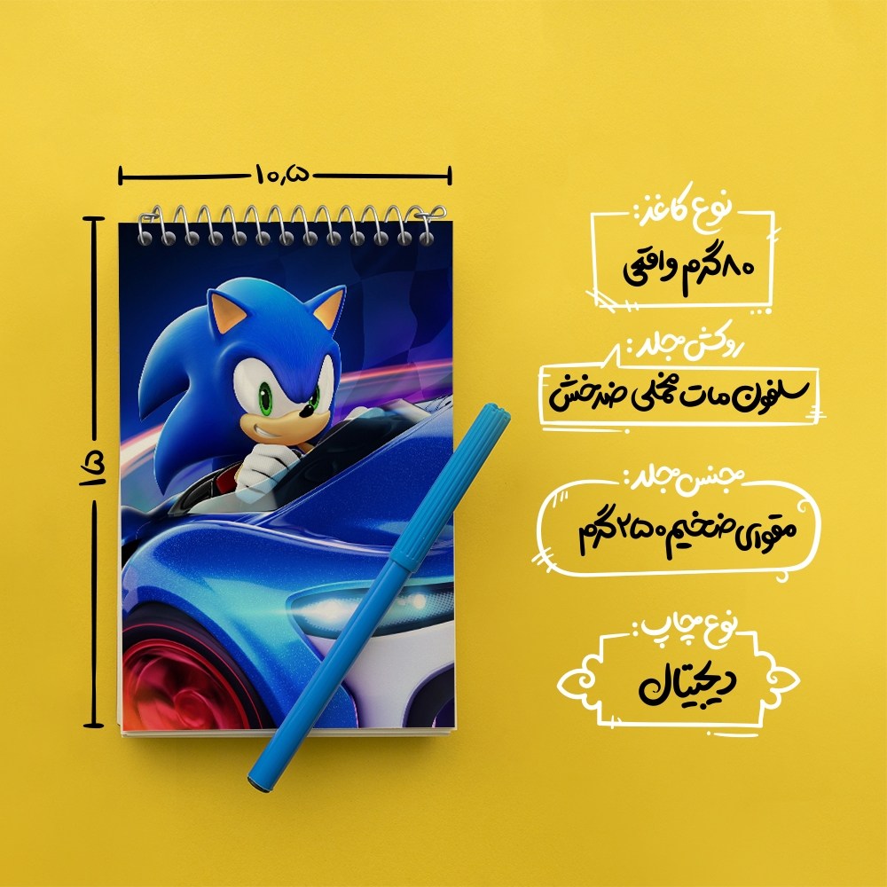 برند خندالو در زمینه تولید انواع دفاتر فانتزی و تحصیلی فعالیت میکند که به دلیل جذابیت ظاهری و طرح های متنوع طرفداران زیادی دارد. دفتر یادداشت خندالو طرح سونیک (Sonic) محصولی مناسب برای همه عاشقان لوازم التحریر است و همچنین همه کسانی که بنا به موقعیت تحصیل یا شغلشان با دفتر و نوشت افزار زیاد سر و کار دارند. در تولید دفتر یادداشت خندالو طرح سونیک (Sonic) از نوع صحافی فنر مارپیچ استفاده شده که در این نوع صحافی برگه‌ها به راحتی چرخیده و یا بیرون آورده می شوند.