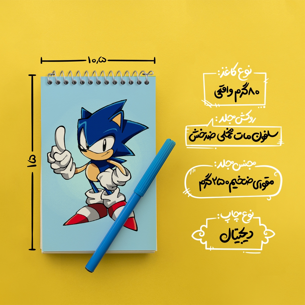 برند خندالو در زمینه تولید انواع دفاتر فانتزی و تحصیلی فعالیت میکند که به دلیل جذابیت ظاهری و طرح های متنوع طرفداران زیادی دارد. دفتر یادداشت خندالو طرح سونیک (Sonic) محصولی مناسب برای همه عاشقان لوازم التحریر است و همچنین همه کسانی که بنا به موقعیت تحصیل یا شغلشان با دفتر و نوشت افزار زیاد سر و کار دارند. در تولید دفتر یادداشت خندالو طرح سونیک (Sonic) از نوع صحافی فنر مارپیچ استفاده شده که در این نوع صحافی برگه‌ها به راحتی چرخیده و یا بیرون آورده می شوند.