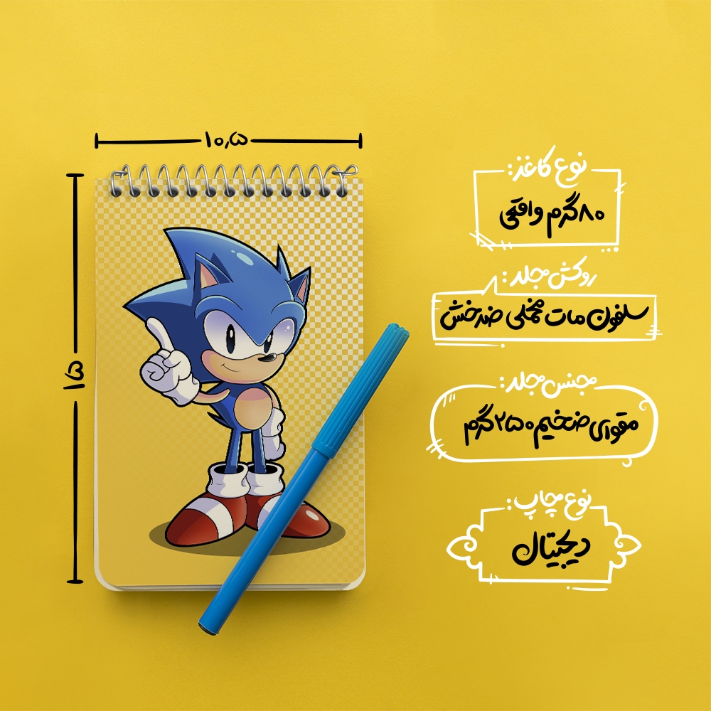 برند خندالو در زمینه تولید انواع دفاتر فانتزی و تحصیلی فعالیت میکند که به دلیل جذابیت ظاهری و طرح های متنوع طرفداران زیادی دارد. دفتر یادداشت خندالو طرح سونیک (Sonic) محصولی مناسب برای همه عاشقان لوازم التحریر است و همچنین همه کسانی که بنا به موقعیت تحصیل یا شغلشان با دفتر و نوشت افزار زیاد سر و کار دارند. در تولید دفتر یادداشت خندالو طرح سونیک (Sonic) از نوع صحافی فنر مارپیچ استفاده شده که در این نوع صحافی برگه‌ها به راحتی چرخیده و یا بیرون آورده می شوند.