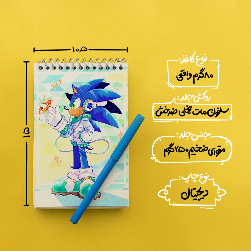 برند خندالو در زمینه تولید انواع دفاتر فانتزی و تحصیلی فعالیت میکند که به دلیل جذابیت ظاهری و طرح های متنوع طرفداران زیادی دارد. دفتر یادداشت خندالو طرح سونیک (Sonic) محصولی مناسب برای همه عاشقان لوازم التحریر است و همچنین همه کسانی که بنا به موقعیت تحصیل یا شغلشان با دفتر و نوشت افزار زیاد سر و کار دارند. در تولید دفتر یادداشت خندالو طرح سونیک (Sonic) از نوع صحافی فنر مارپیچ استفاده شده که در این نوع صحافی برگه‌ها به راحتی چرخیده و یا بیرون آورده می شوند.