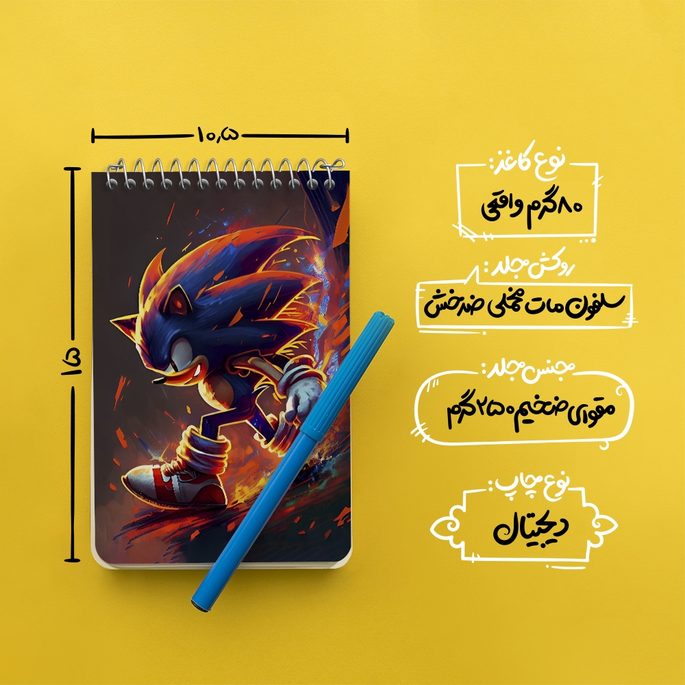 برند خندالو در زمینه تولید انواع دفاتر فانتزی و تحصیلی فعالیت میکند که به دلیل جذابیت ظاهری و طرح های متنوع طرفداران زیادی دارد. دفتر یادداشت خندالو طرح سونیک (Sonic) محصولی مناسب برای همه عاشقان لوازم التحریر است و همچنین همه کسانی که بنا به موقعیت تحصیل یا شغلشان با دفتر و نوشت افزار زیاد سر و کار دارند. در تولید دفتر یادداشت خندالو طرح سونیک (Sonic) از نوع صحافی فنر مارپیچ استفاده شده که در این نوع صحافی برگه‌ها به راحتی چرخیده و یا بیرون آورده می شوند.