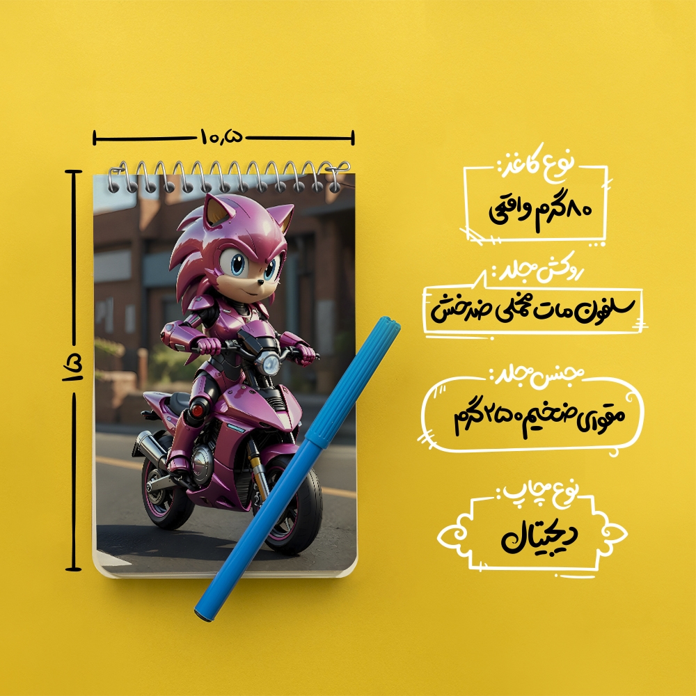 برند خندالو در زمینه تولید انواع دفاتر فانتزی و تحصیلی فعالیت میکند که به دلیل جذابیت ظاهری و طرح های متنوع طرفداران زیادی دارد. دفتر یادداشت خندالو طرح سونیک (Sonic) محصولی مناسب برای همه عاشقان لوازم التحریر است و همچنین همه کسانی که بنا به موقعیت تحصیل یا شغلشان با دفتر و نوشت افزار زیاد سر و کار دارند. در تولید دفتر یادداشت خندالو طرح سونیک (Sonic) از نوع صحافی فنر مارپیچ استفاده شده که در این نوع صحافی برگه‌ها به راحتی چرخیده و یا بیرون آورده می شوند.
