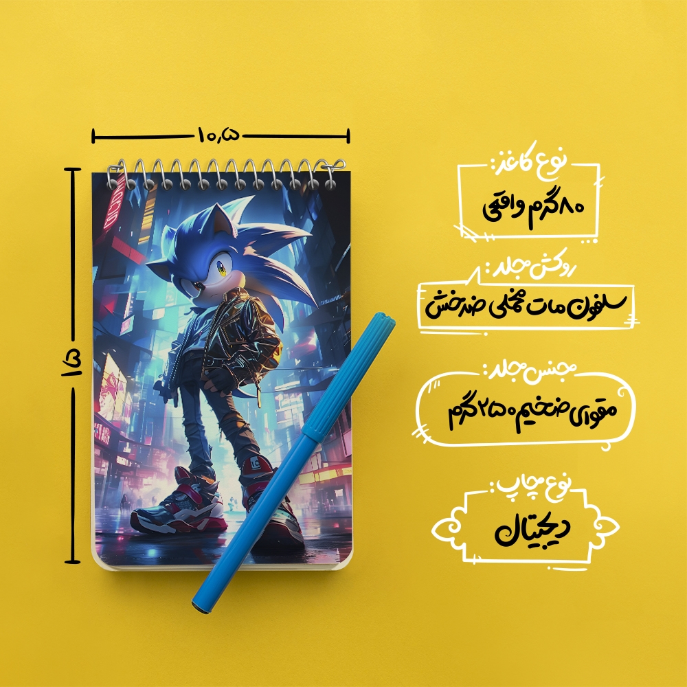 برند خندالو در زمینه تولید انواع دفاتر فانتزی و تحصیلی فعالیت میکند که به دلیل جذابیت ظاهری و طرح های متنوع طرفداران زیادی دارد. دفتر یادداشت خندالو طرح سونیک (Sonic) محصولی مناسب برای همه عاشقان لوازم التحریر است و همچنین همه کسانی که بنا به موقعیت تحصیل یا شغلشان با دفتر و نوشت افزار زیاد سر و کار دارند. در تولید دفتر یادداشت خندالو طرح سونیک (Sonic) از نوع صحافی فنر مارپیچ استفاده شده که در این نوع صحافی برگه‌ها به راحتی چرخیده و یا بیرون آورده می شوند.