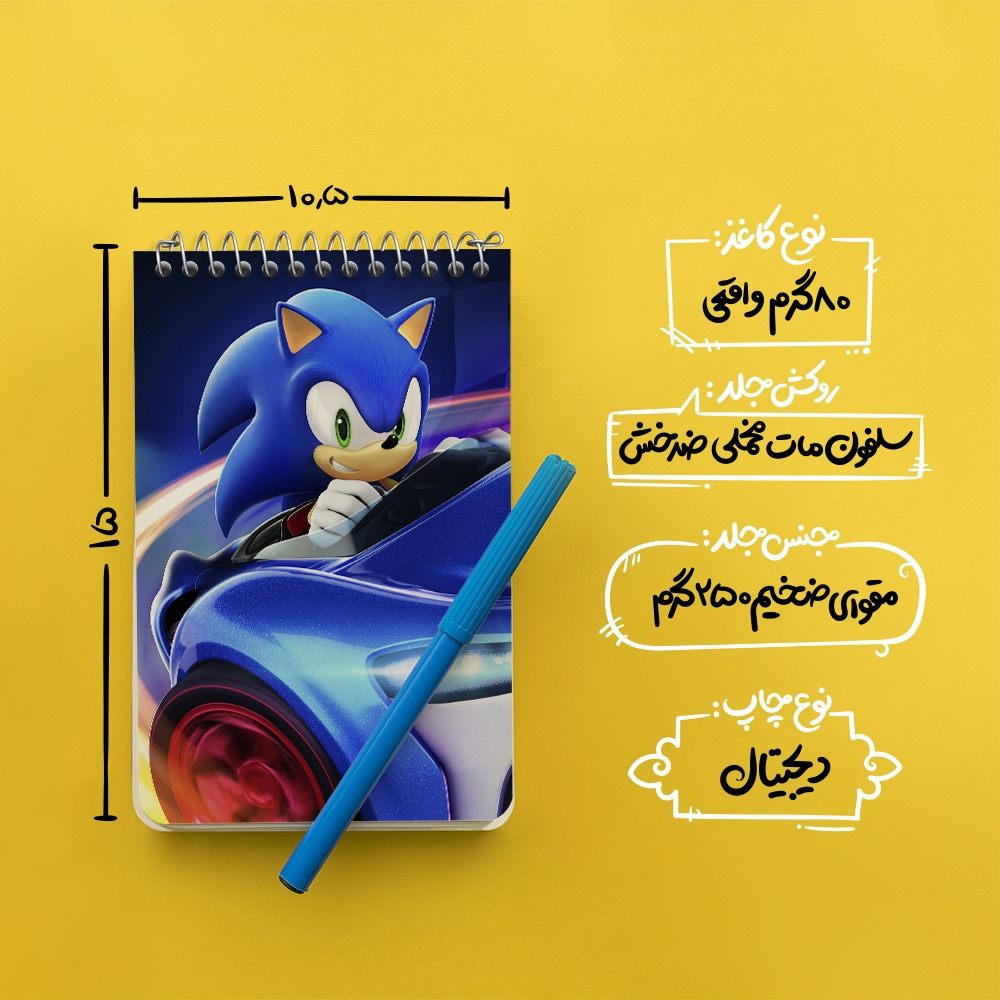 برند خندالو در زمینه تولید انواع دفاتر فانتزی و تحصیلی فعالیت میکند که به دلیل جذابیت ظاهری و طرح های متنوع طرفداران زیادی دارد. دفتر یادداشت خندالو طرح سونیک (Sonic) محصولی مناسب برای همه عاشقان لوازم التحریر است و همچنین همه کسانی که بنا به موقعیت تحصیل یا شغلشان با دفتر و نوشت افزار زیاد سر و کار دارند. در تولید دفتر یادداشت خندالو طرح سونیک (Sonic) از نوع صحافی فنر مارپیچ استفاده شده که در این نوع صحافی برگه‌ها به راحتی چرخیده و یا بیرون آورده می شوند.