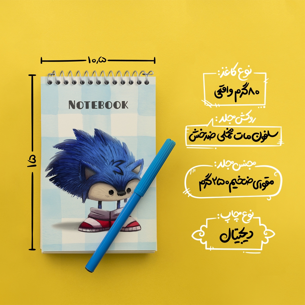 برند خندالو در زمینه تولید انواع دفاتر فانتزی و تحصیلی فعالیت میکند که به دلیل جذابیت ظاهری و طرح های متنوع طرفداران زیادی دارد. دفتر یادداشت خندالو طرح سونیک (Sonic) محصولی مناسب برای همه عاشقان لوازم التحریر است و همچنین همه کسانی که بنا به موقعیت تحصیل یا شغلشان با دفتر و نوشت افزار زیاد سر و کار دارند. در تولید دفتر یادداشت خندالو طرح سونیک (Sonic) از نوع صحافی فنر مارپیچ استفاده شده که در این نوع صحافی برگه‌ها به راحتی چرخیده و یا بیرون آورده می شوند.