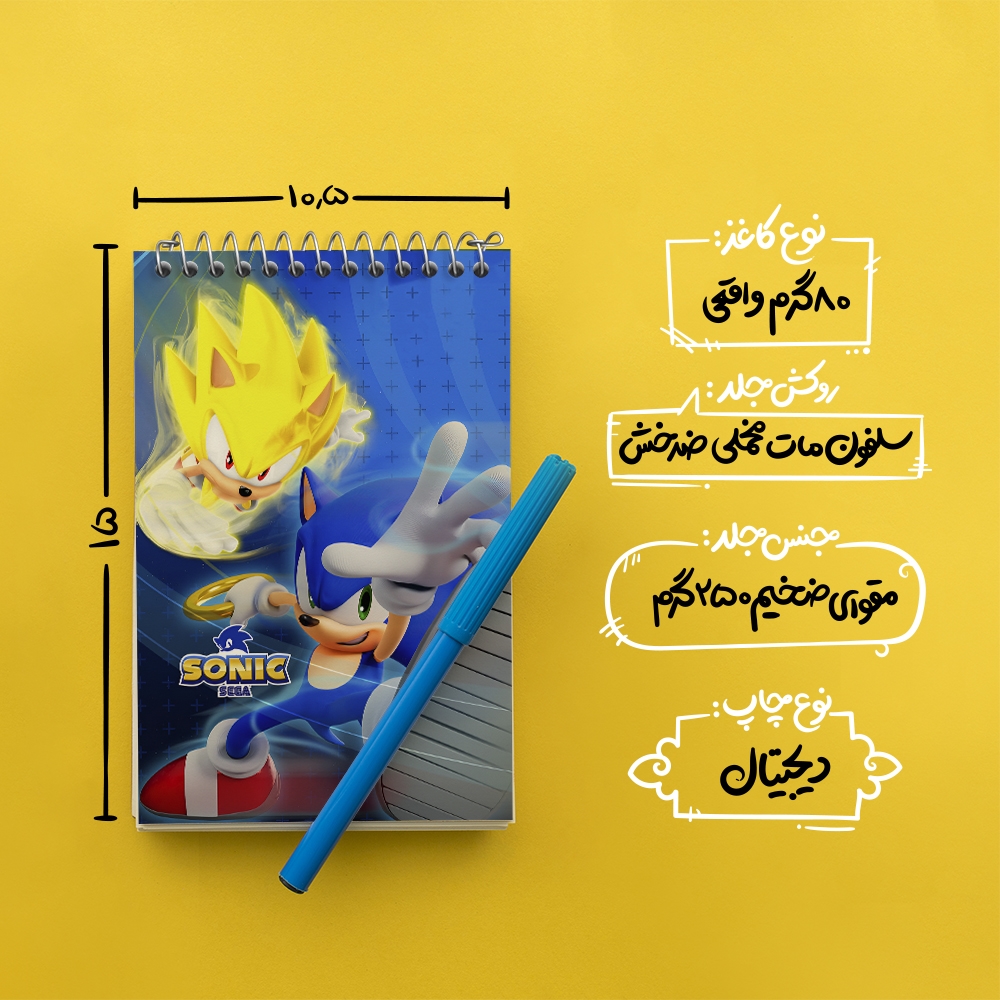 برند خندالو در زمینه تولید انواع دفاتر فانتزی و تحصیلی فعالیت میکند که به دلیل جذابیت ظاهری و طرح های متنوع طرفداران زیادی دارد. دفتر یادداشت خندالو طرح سونیک (Sonic) محصولی مناسب برای همه عاشقان لوازم التحریر است و همچنین همه کسانی که بنا به موقعیت تحصیل یا شغلشان با دفتر و نوشت افزار زیاد سر و کار دارند. در تولید دفتر یادداشت خندالو طرح سونیک (Sonic) از نوع صحافی فنر مارپیچ استفاده شده که در این نوع صحافی برگه‌ها به راحتی چرخیده و یا بیرون آورده می شوند.