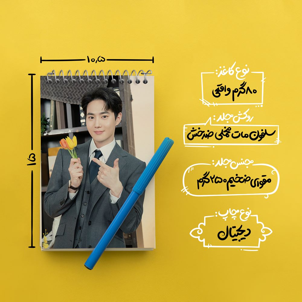 برند خندالو در زمینه تولید انواع دفاتر فانتزی و تحصیلی فعالیت میکند که به دلیل جذابیت ظاهری و طرح های متنوع طرفداران زیادی دارد. دفتر یادداشت خندالو طرح سوهو گروه اکسو EXO محصولی مناسب برای همه عاشقان لوازم التحریر است و همچنین همه کسانی که بنا به موقعیت تحصیل یا شغلشان با دفتر و نوشت افزار زیاد سر و کار دارند. در تولید دفتر یادداشت خندالو طرح سوهو گروه اکسو EXO از نوع صحافی فنر مارپیچ استفاده شده که در این نوع صحافی برگه‌ها به راحتی چرخیده و یا بیرون آورده می شوند.