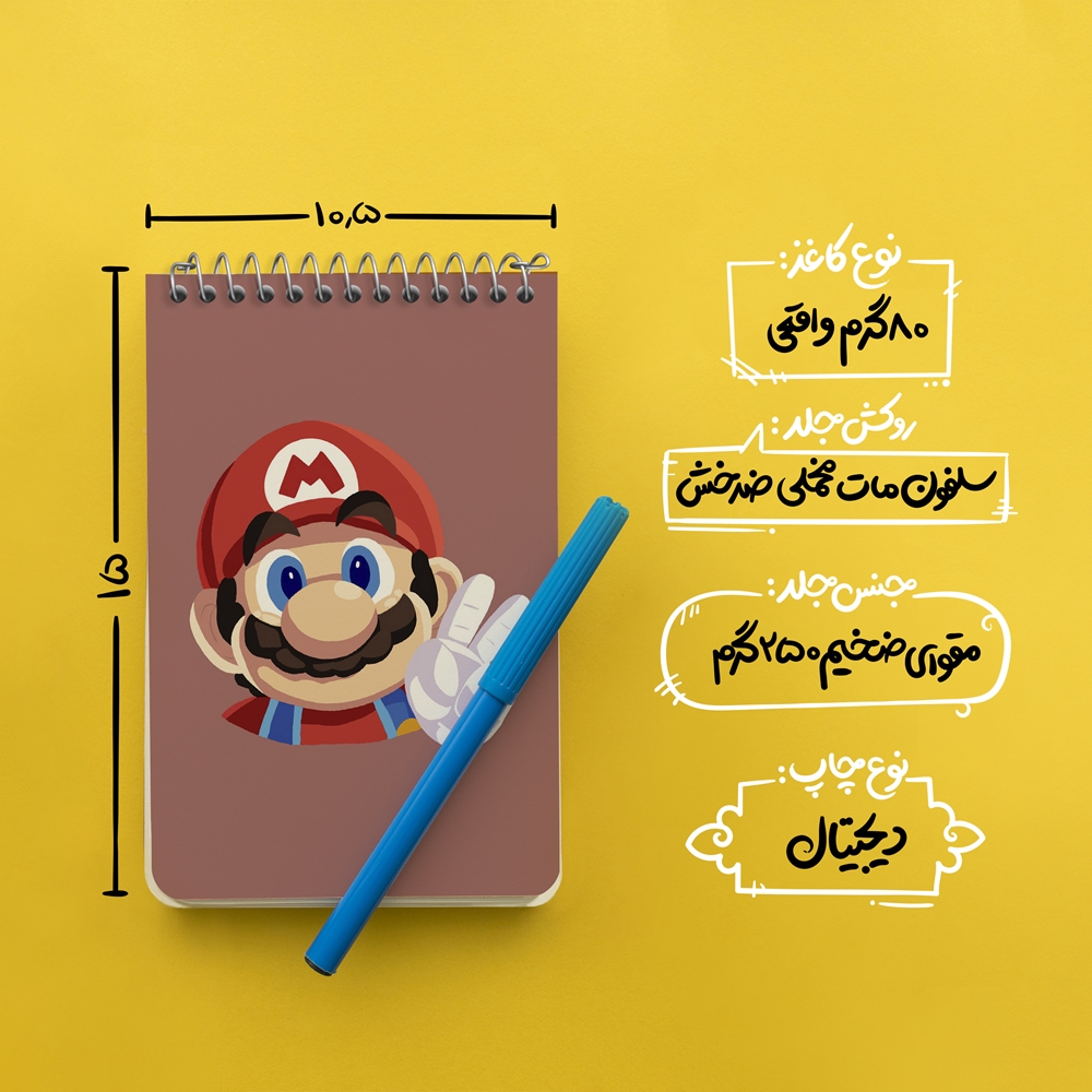 برند خندالو در زمینه تولید انواع دفاتر فانتزی و تحصیلی فعالیت میکند که به دلیل جذابیت ظاهری و طرح های متنوع طرفداران زیادی دارد. دفتر یادداشت خندالو طرح سوپر ماریو محصولی مناسب برای همه عاشقان لوازم التحریر است و همچنین همه کسانی که بنا به موقعیت تحصیل یا شغلشان با دفتر و نوشت افزار زیاد سر و کار دارند. در تولید دفتر یادداشت خندالو طرح سوپر ماریو از نوع صحافی فنر مارپیچ استفاده شده که در این نوع صحافی برگه‌ها به راحتی چرخیده و یا بیرون آورده می شوند.