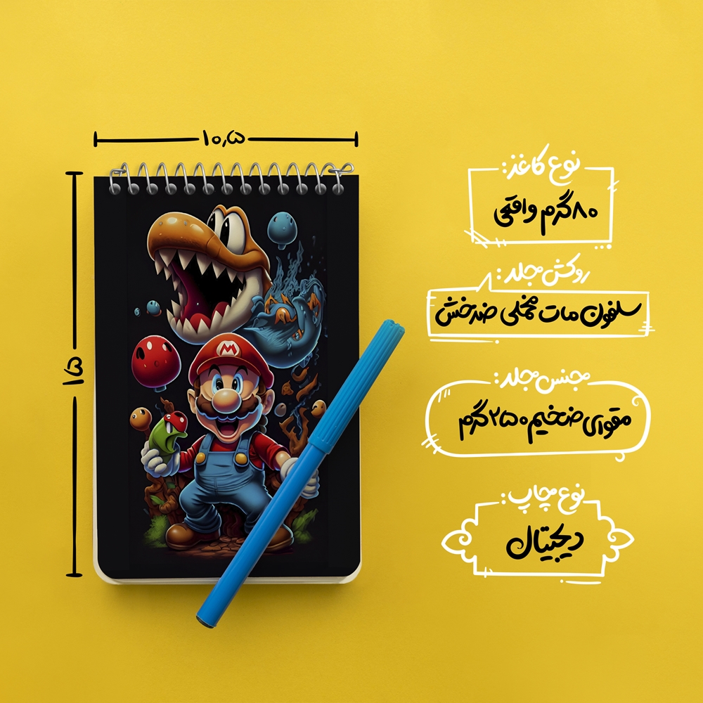 برند خندالو در زمینه تولید انواع دفاتر فانتزی و تحصیلی فعالیت میکند که به دلیل جذابیت ظاهری و طرح های متنوع طرفداران زیادی دارد. دفتر یادداشت خندالو طرح سوپر ماریو محصولی مناسب برای همه عاشقان لوازم التحریر است و همچنین همه کسانی که بنا به موقعیت تحصیل یا شغلشان با دفتر و نوشت افزار زیاد سر و کار دارند. در تولید دفتر یادداشت خندالو طرح سوپر ماریو از نوع صحافی فنر مارپیچ استفاده شده که در این نوع صحافی برگه‌ها به راحتی چرخیده و یا بیرون آورده می شوند.