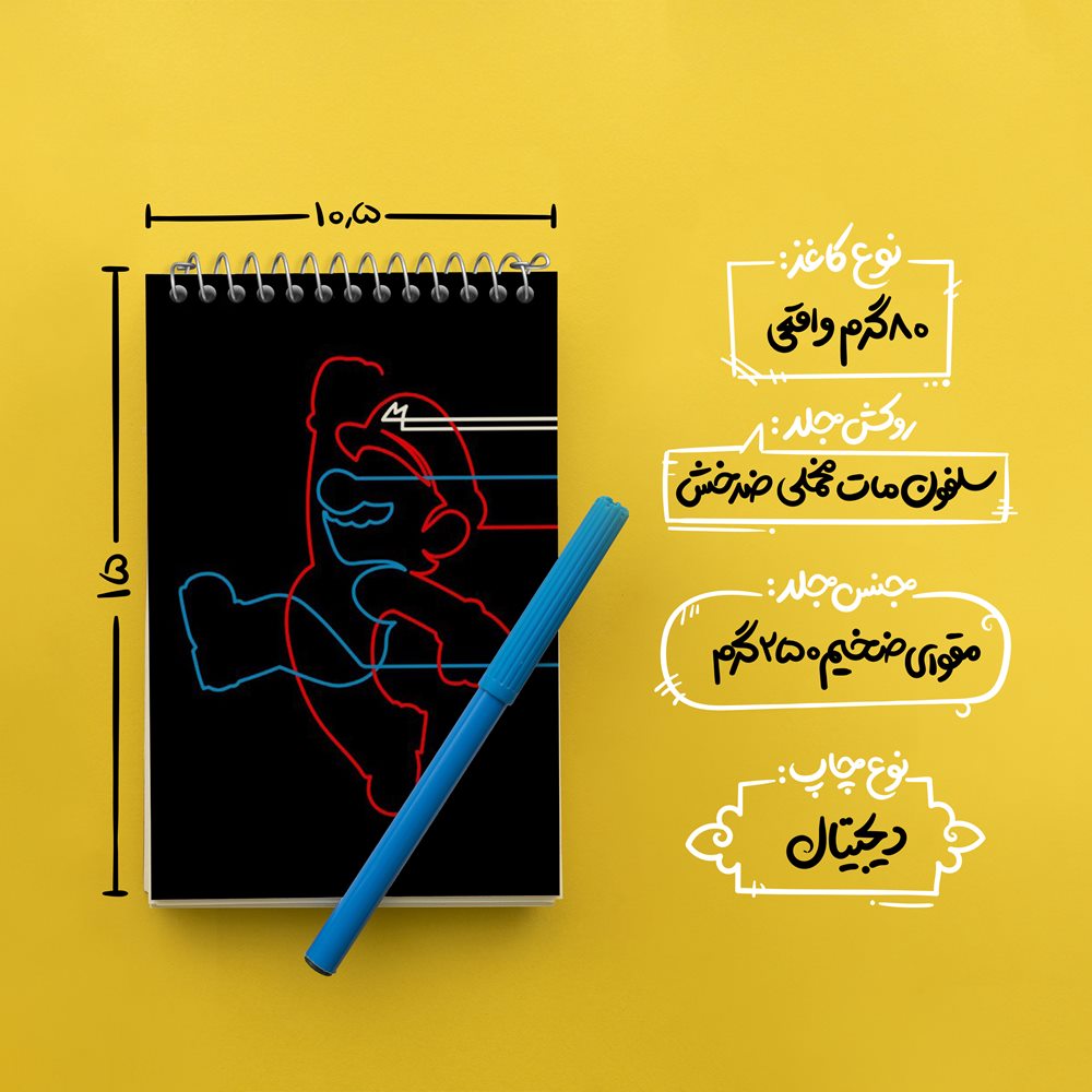 برند خندالو در زمینه تولید انواع دفاتر فانتزی و تحصیلی فعالیت میکند که به دلیل جذابیت ظاهری و طرح های متنوع طرفداران زیادی دارد. دفتر یادداشت خندالو طرح سوپر ماریو محصولی مناسب برای همه عاشقان لوازم التحریر است و همچنین همه کسانی که بنا به موقعیت تحصیل یا شغلشان با دفتر و نوشت افزار زیاد سر و کار دارند. در تولید دفتر یادداشت خندالو طرح سوپر ماریو از نوع صحافی فنر مارپیچ استفاده شده که در این نوع صحافی برگه‌ها به راحتی چرخیده و یا بیرون آورده می شوند.