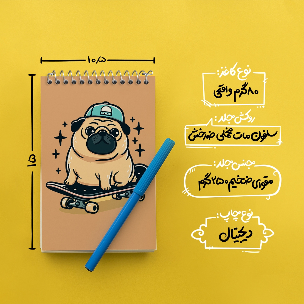 برند خندالو در زمینه تولید انواع دفاتر فانتزی و تحصیلی فعالیت میکند که به دلیل جذابیت ظاهری و طرح های متنوع طرفداران زیادی دارد. دفتر یادداشت خندالو طرح سگ اسکیت سوار محصولی مناسب برای همه عاشقان لوازم التحریر است و همچنین همه کسانی که بنا به موقعیت تحصیل یا شغلشان با دفتر و نوشت افزار زیاد سر و کار دارند. در تولید دفتر یادداشت خندالو طرح سگ اسکیت سوار از نوع صحافی فنر مارپیچ استفاده شده که در این نوع صحافی برگهها به راحتی چرخیده و یا بیرون آورده می شوند. دفتر های خندالو دارای جلد انعطاف پذیر از جنس مقوای گلاسه 250 گرم با روکش سلفون مات مخملی است که به شما امکان میدهد از دفتر خود بدون اینکه نگرانی از شکستن یا خراب شدن جلد را داشته باشید استفاده کنید و همچنین در این دفاتر از کاغذ 80 گرم با کیفیت استفاده شده که باعث میشود هنگام نوشتن به خوبی جوهر قلم بر روی صفحه نشسته و از خط خوردگیها جلوگیری کند. دفتر یادداشت خندالو با جنس و دوام مناسب، برگه های کاملاً سفید و خطوط طوسی دقیق را داراست که انسان را به نوشتن منظم و زیبا ترغیب میکند. طراحی کاملاً مناسب این دفاتر، به همراه کیفیت بالا، از آن یک محصول مورد علاقه و قابل اعتماد برای همه مقاطع تحصیلی میسازد. دفتر یادداشت خندالو طرح سگ اسکیت سوار انتخابی هوشمندانه و مناسب برای افرادی است که به دنبال دفتری با کیفیت و کاربرد عالی هستند. این دفتر، همراه خوبی برای شما در تمام مراحل تحصیل و کار خواهد بود و تجربهای لذتبخش از نوشتن و آموختن را به شما هدیه میدهد.